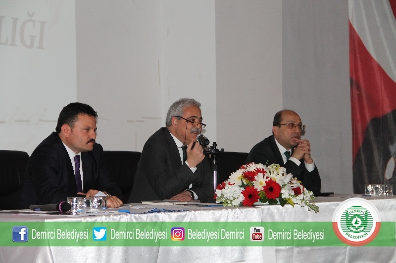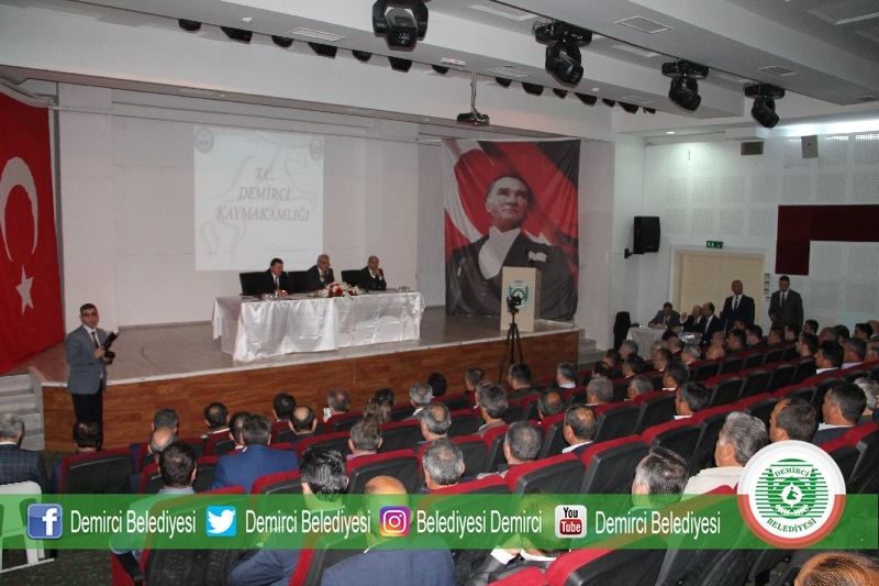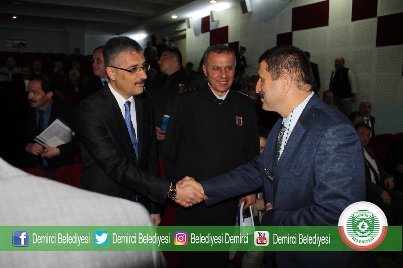Demirci Ticaret ve Kültür Merkezi konferans salonuna giden Manisa Valisi Mustafa Hakan Güvençer, burada ilçe kurum amirleri ve mahalle muhtarları ile toplantı yaptı.
