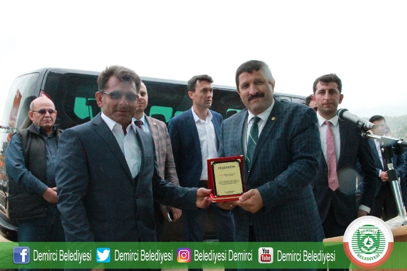 Törende Ayvaalan Mahalle Muhtarı Yusuf Çakırçoban tarafından Demirci Belediye Başkanı Selami Selçuk'a hizmetlerinden dolayı teşekkür plaketi takdim edilmesinin ardından, Ayvaalan Sulama barajının açılış kurdelesi kesildi.