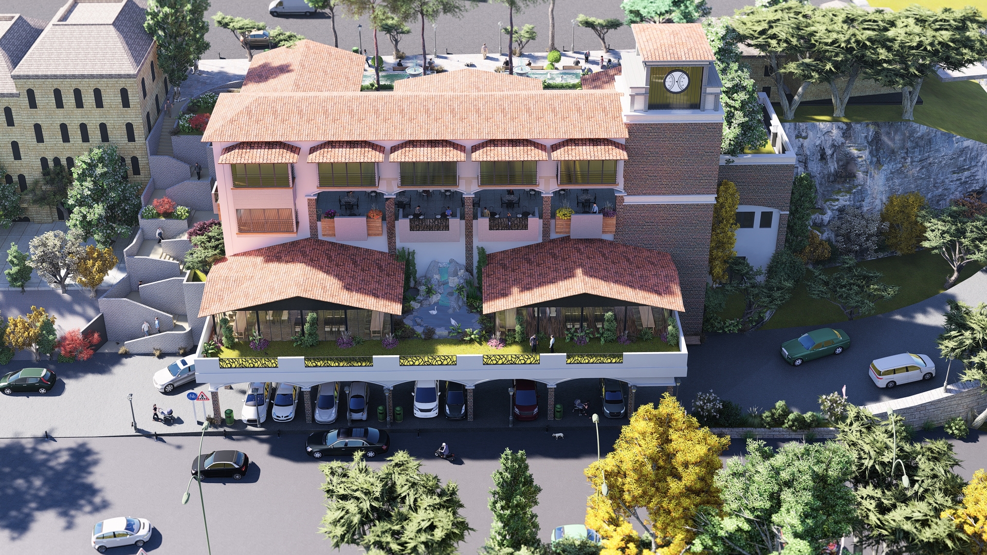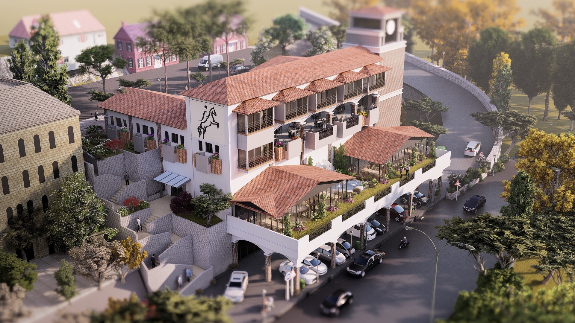 Demirci'nin gelecek yüzyıllarına hizmet verecek olan Kent Merkezi 4 katlı iş merkezlerinin yer aldığı,önünde geniş meydanlık alan bulunan, en alt katı yani 2. Bodrum katı yaklaşık 1200 metrekarelik kapalı pazar yeri olarak kullanılacak ve binada otopark alanıda yer alacak. Market alanı, çocuklar için geniş bir kapalı oyun alanı, yaşam alanına bakan açık teras ve restoran yer alacak.