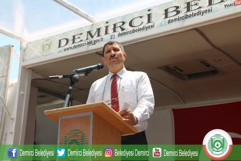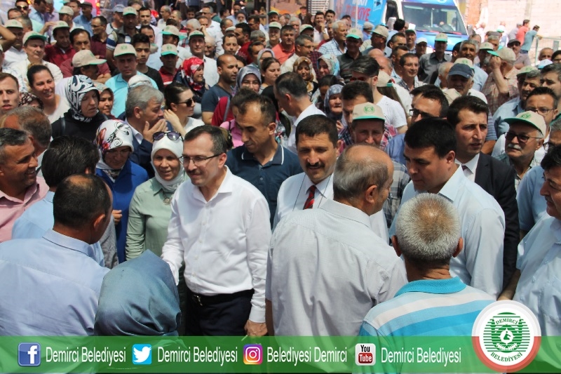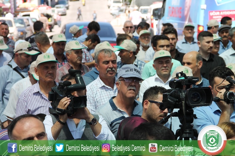 Konuşmaların ardından Demirci Belediyesi Kent Merkezinin temeli atılarak, inşaat başladı.