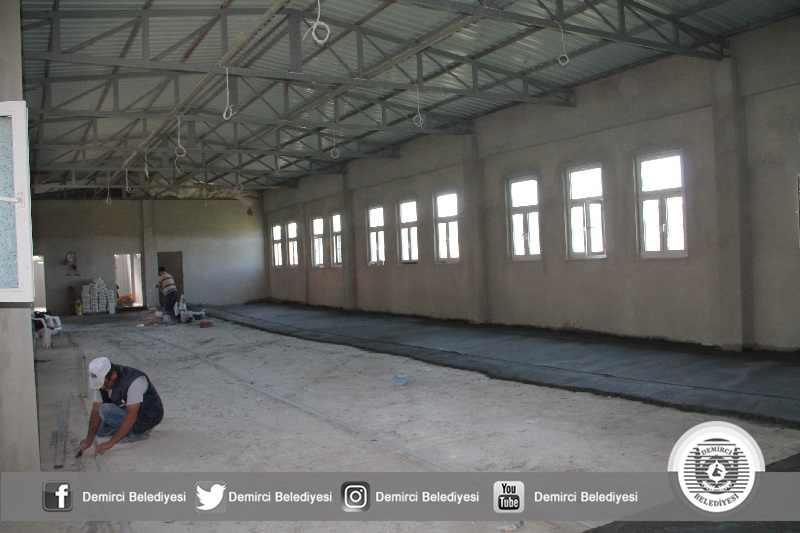 Bardakçı mahallesine Demirci Belediyesi tarafından yapılan 2 katlı çok amaçlı salon inşaatında pencere montajı, iç cephe sıva çalışmaları ve yemek alan düzenlemeleri tamamlandı. Önümüzdeki hafta içerisinde salonun dış cephesine sıva ve boya çalışmalarına başlanırken, salonun alt katına mermer, üst kat tabanına ise seramik döşemesi yapılacak.