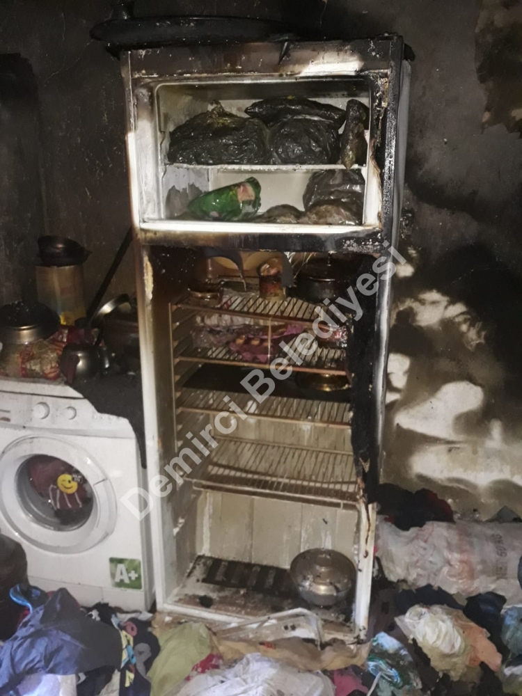 Demirci'ye bağlı Küpeler mahallesinde Halil Barışık'ın ikamet ettiği evde elektrik kontağından yangın çıktı. Evden alevlerin yükseldiğini gören mahalle sakinleri yangına kendi imkanları ile müdahale ederlerken, itfaiye ekiplerine haber verdiler. Yangın esnasında evde yalnız olan 2 yaşındaki Emir Barışık'ı yengesi Hatice Barışık tarafından kurtarılarak dışarı çıkarılıyor. Duman etkilenen Emir Barışık sağlık ekiplerince Demirci Devlet Hastanesine kaldırıldı.