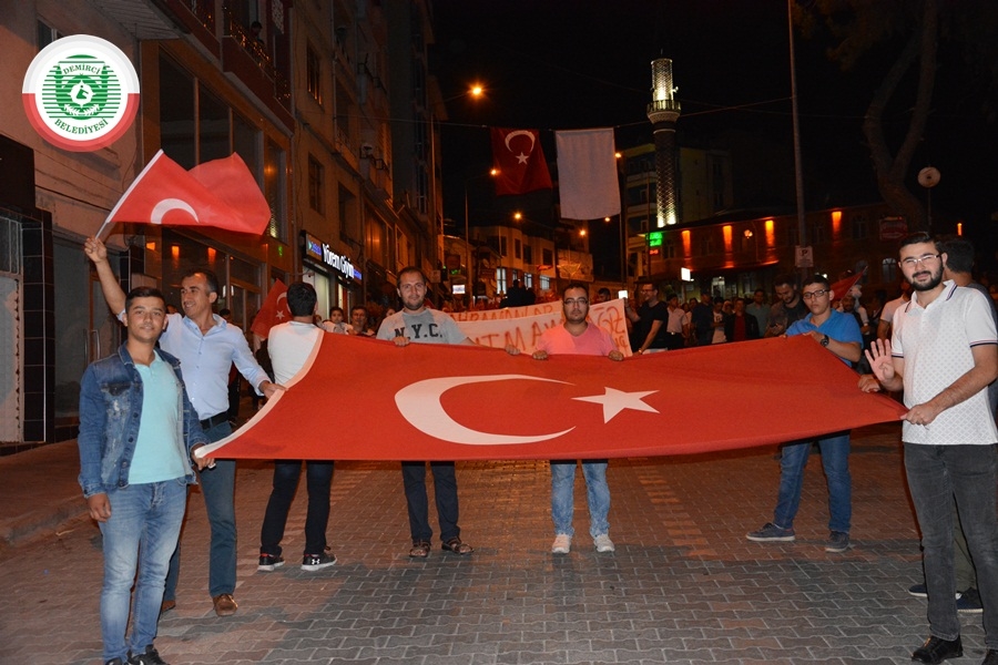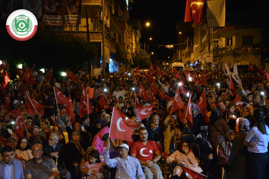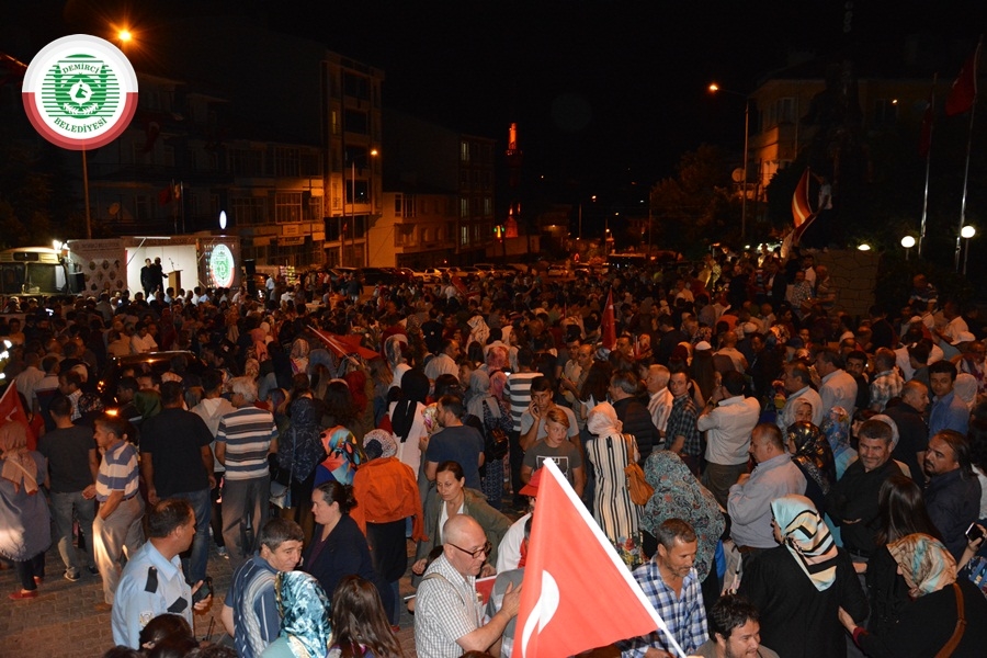 Kaymakam Mutlu Akyol ise “ Türkiye’nin birliğine göz diken hainlere aziz milletimiz en güzel cevabı vermiştir. Milletimiz o gecede demokrasisine sahip çıkmıştır “dedi.