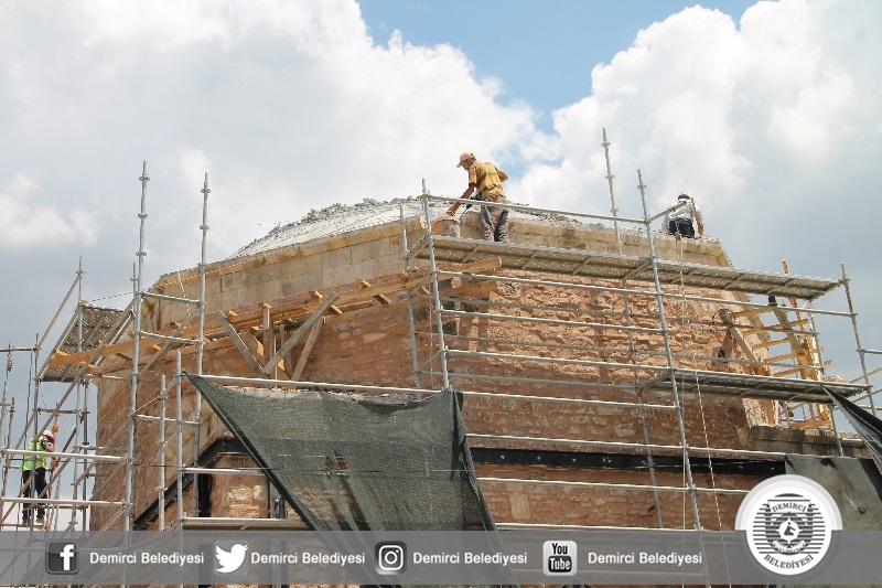 Hacı Hasan caminin kubbesinin eski betonları sökülürken, temizleme çalışmasının ardından kubbeye güçlendirme demiri montajının ardından kiremit örme yapılarak daha düzenli hale getirilecek.