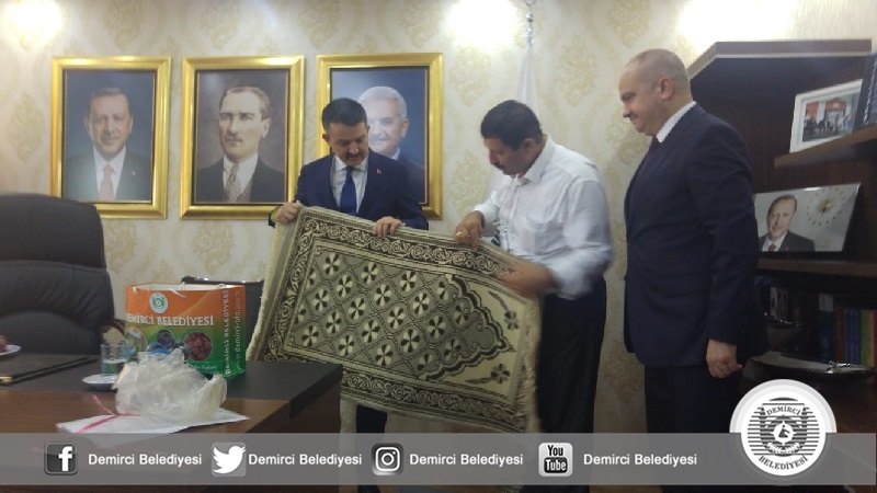 Başkan Selçuk ayrıca, Bakan Pakdemirli'ye, Demirci organik el dokuma halı hediye ederken, yine Demircimizde yetişen organik figani efedi eriği ve hünnap hediye etti.
