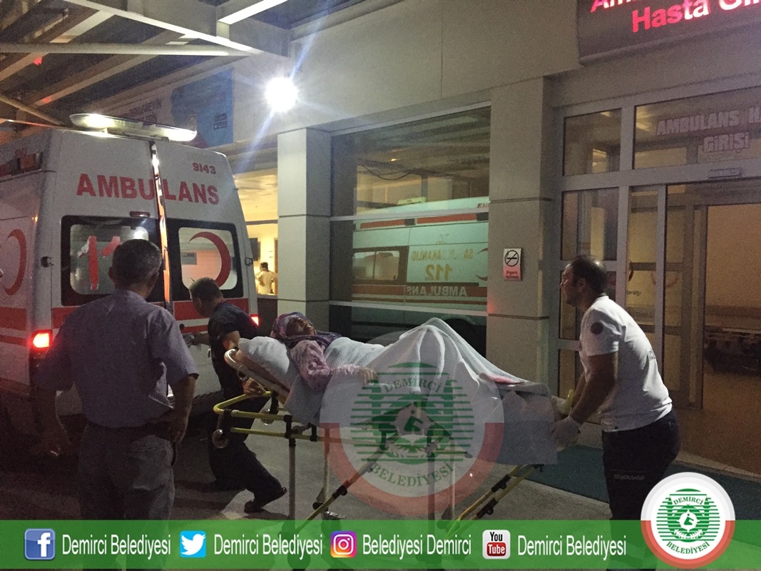Olay yerinden geçen bir vatandaş tarafından kurtarılan yaşlı kadın Demirci Devlet Hastanesine getirildi.