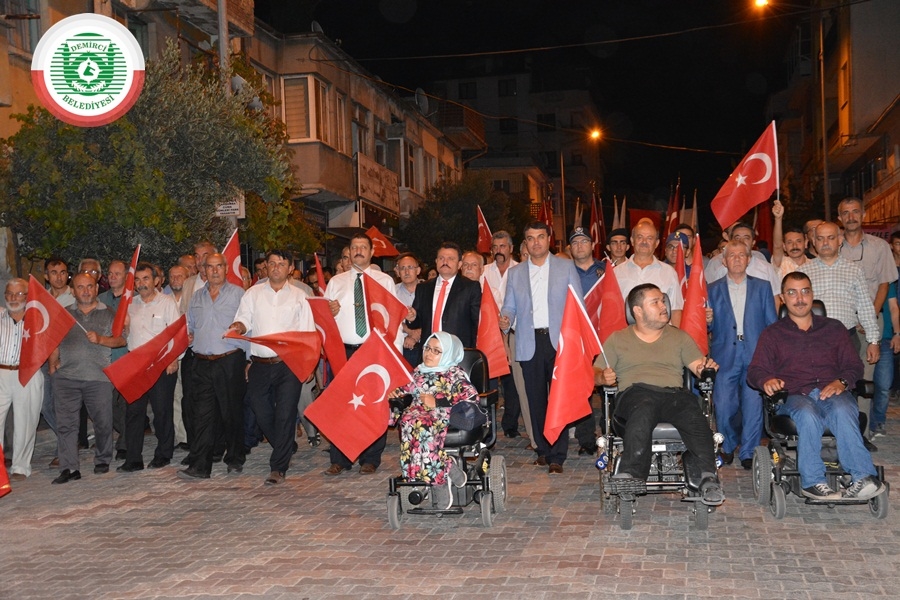 Yürüyüşün ardından Demirci Belediyesi hizmet binası önünde düzenlenen anma programına ve konsere Demirci Kaymakamı Mutlu Akyol, eşi Oya Akyol, Belediye Başkanı Selami Selçuk, eşi Güzide Selçuk, Belediye Başkan Yadımcısı Mustafa Ünlü, AK Parti İlçe Başkanı Mehmet Acar, MHP İlçe Başkanı Yılmaz Ayhan, Belediye Meclis Üyeleri, Muhtarlar, Türkiye İzcilik Federasyonu İzcileri, Gaziler ve Çok sayıda vatandaş katıldı.