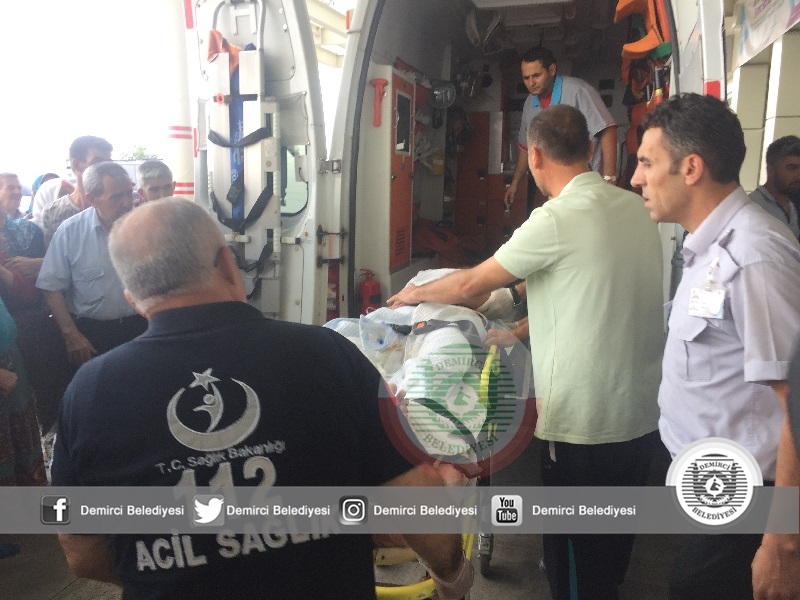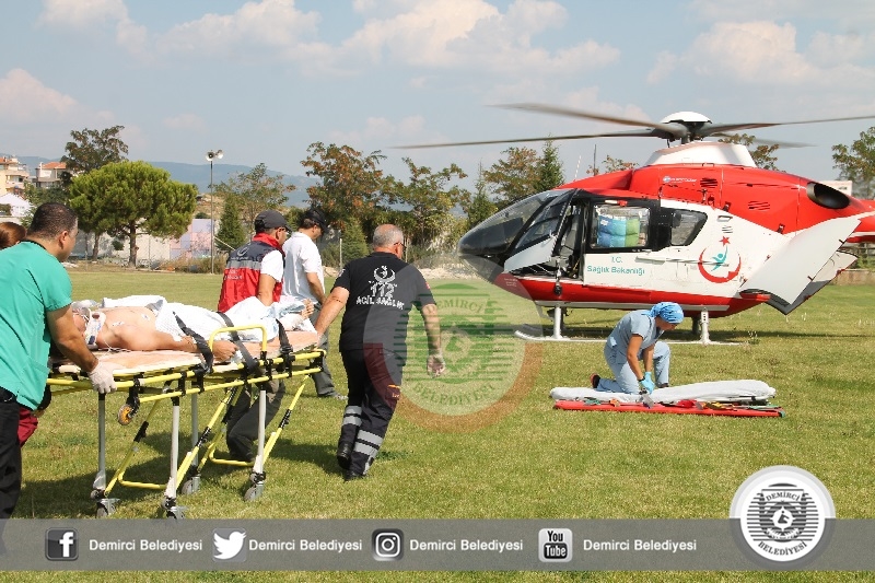 Demirci Devlet Hastanesinde yaralılara yapılan ilk müdahalede İbrahim İncirlikaya'nın başından darbe aldığı ve iç kanama şüphesiyle hava ambulansı talep edildi.