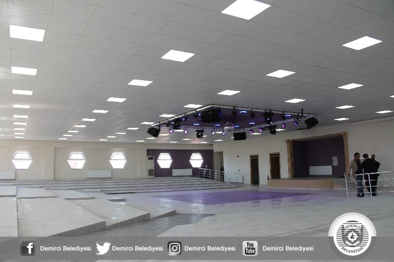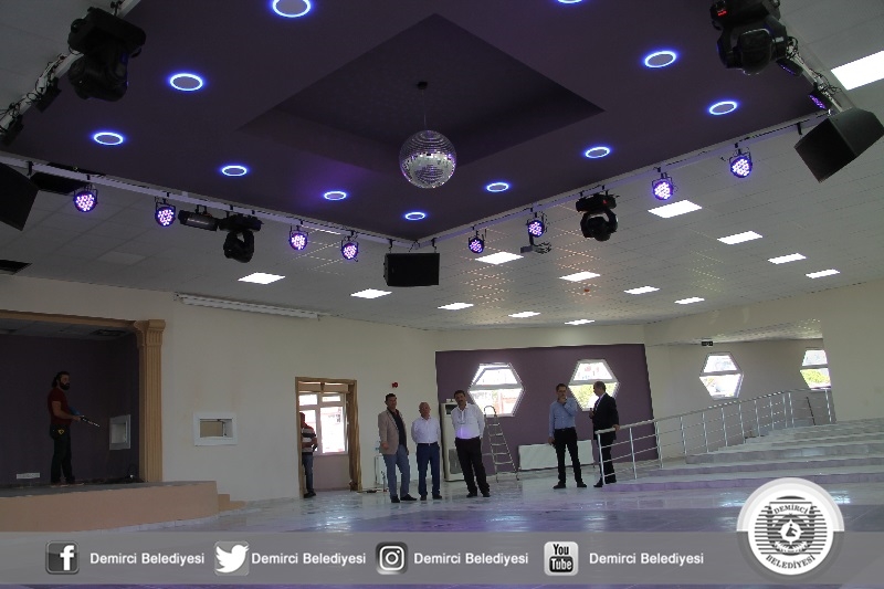 Demirci'nin her noktasına hizmetlerini ulaştıran ve yıllanmış sorunlara çözüm bulan belediyecilik anlayışı ile çalışan Belediye Başkanı Selami Selçuk, Akıncılar Mahallesine 850 metrekare kullanım alanı olan, içerisinde gelin odası, mutfak, engelli lavaboları, kantini ve kulisi ile tam donanımlı bir düğün salonunu Demirci'ye kazandırdı.