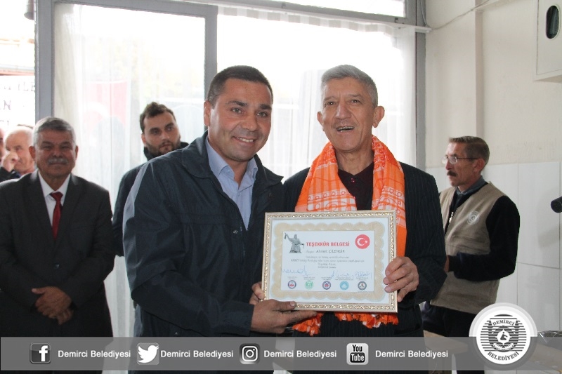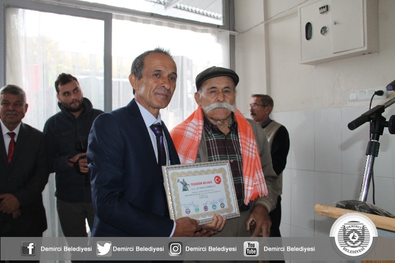 Programda unutulmaya yüz tutmuş Semercilik, Naht Sanatı, Kalaycılık, Kıspetçilik, Kirkitçilik, Helvacılık, Matbaacılık ve Çancılık gibi meslekleri yaşatan yaşlı ustalara Demirci Kaymakamı Mutlu Akyol, Belediye Başkanı Selami Selçuk, Manisa Esnaf ve Sanatkarlar Odaları Birliği Başkanı Hasan Geriter ve Demirci Sivil Toplum kuruluşu başkanlarınca teşekkür belgesi takdim edildi.