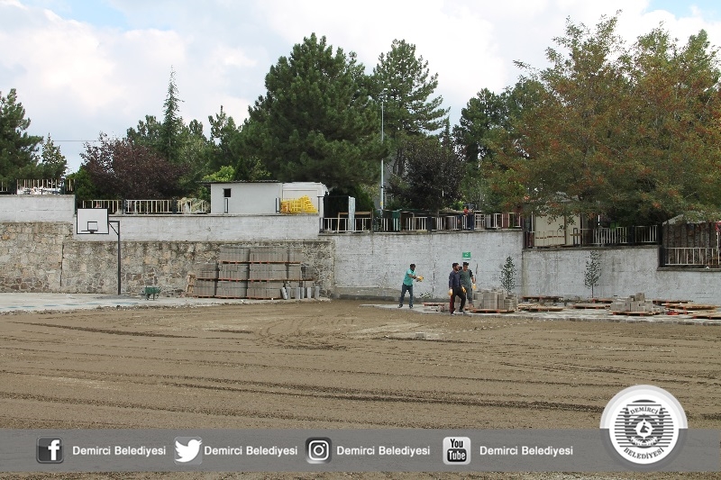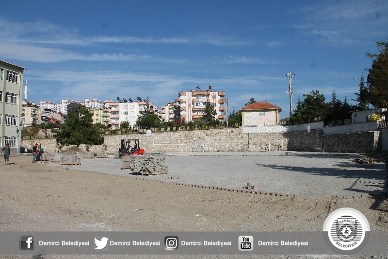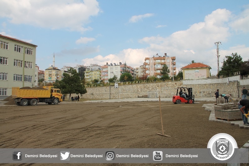 Demirci Belediyesince daha önce Cengiz Topel Enver Armağan İlkokulu ve 75'inci Yıl Alime Paşa Eğitim Kurumları bahçesinde parke taşı döşeme çalışmaları yapılarak güzel bir görünüme kavuşturulmuştu.
