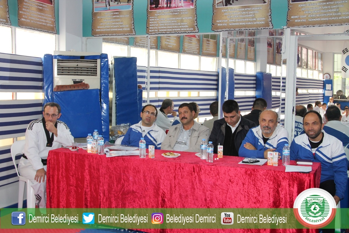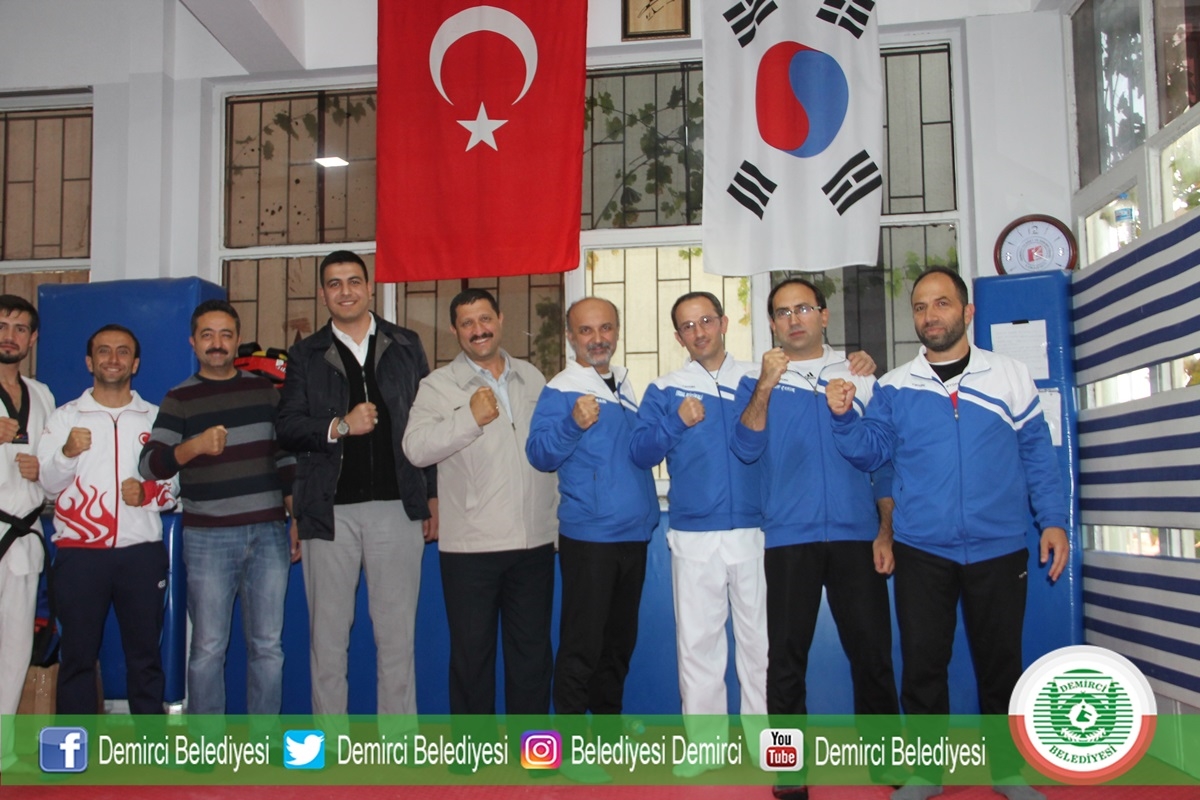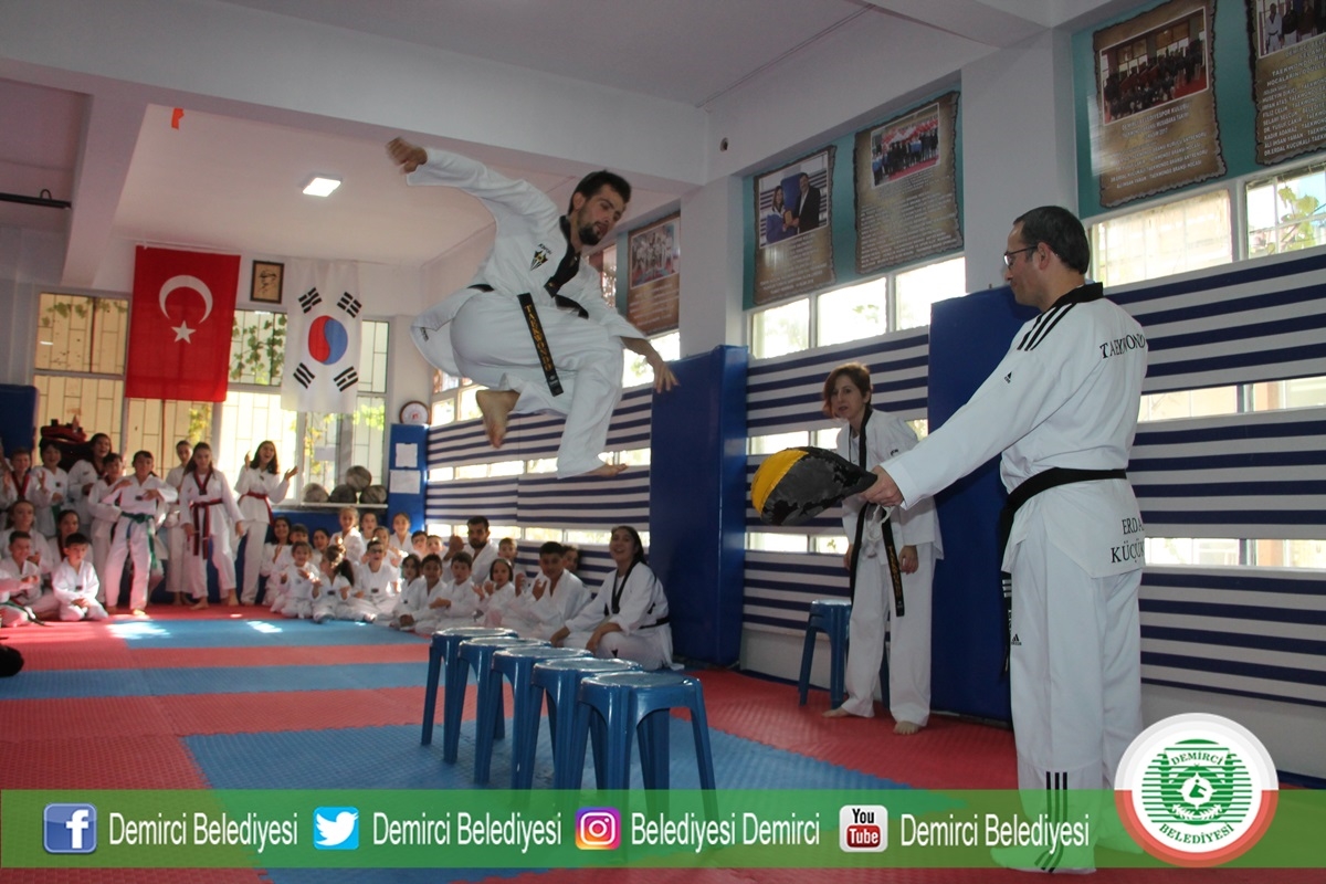 Taekwondo spor salonunda düzenlenen kuşak sınavına Demirci Belediye Başkanı Selami Selçuk, Gençlik Hizmetleri ve Spor İlçe Müdürü Bilal Yılmaz, Hokey Milli Antrenörü Serkan Şen, sporcular ve sporcu aileleri katıldı.