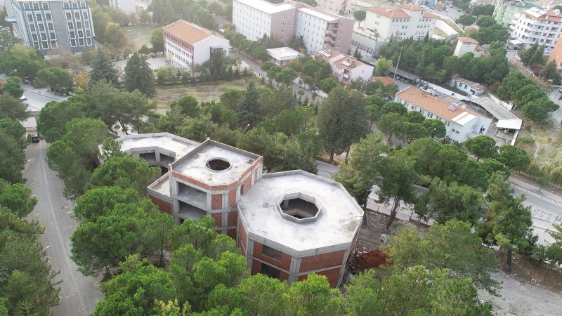 Belediye Başkanı Selami Selçuk'un girişimleri ile Eğitim Fakültesine, Hemşerimiz Hayırsever İşadamı Özgen İzmiroğlu tarafından yapılan kütüphane ve gözlemevi yapımında kaba inşaat tamamlandı.