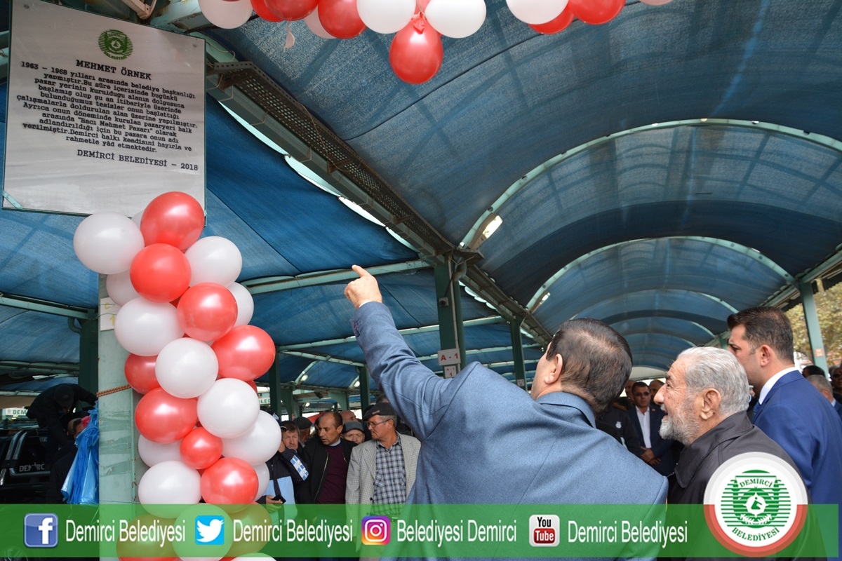 Programda konuşan Belediye Başkanı Selami Selçuk " Şehir insan gibi canlıdır. Şehir bir şekilde büyür gelişir ama burada en önemli faktör insandır. Bizim medeniyetimiz vefa medeniyetidir. Biz Demircimizin gelişmesinde, kültürünün oluşmasında önderlik yapmış değerli büyüklerimize bazı tesislere adını vererek ismini yaşatmak istedik. Bizim çocukluğumuzda Hacı Mehmet pazarı vardı. Töreni yaptığımız pazaryeri çukurdu. Mehmet Örnek başkanımızın döneminde buranın dolgusuna başlanmış. Biz eski Belediye Başkanlarımızın hatıratı yaşansın istedik. Her tesise birer belediye başkanımızın isimlerinin yer aldığı kitabeler bulunacak. Pazaryerine Mehmet Örnek başkanımızın adını, belediyemiz tarafından ilçemize yaptığımız kır düğün salonuna eski belediye başkanlarımızdan merhum Mustafa Orhun'un adını veriyoruz. Yine ilçemiz Beyazıt mahallesine yaptığımız parkada eski belediye başkanlarımızdan Memduh Çakmakoğlu'nun adını verdik. Ebediyete intikal eden Belediye Başkanlarımıza rahmet diliyorum "dedi.