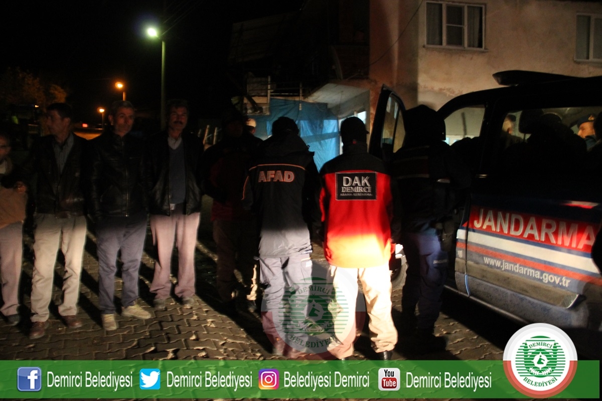 Vatandaşlarında destek verdiği arama faaaliyetlerinde Afad, Demirci, Sındırgı, Gördes Jandarma ekipleri ve Demirci Belediyesi Arama Kurtarma Timinden oluşan 100 kişilik ekip 5 ayrı noktadan Sığırova ve Gökçesu mevkiilerinde arama faaliyeti yaptı.