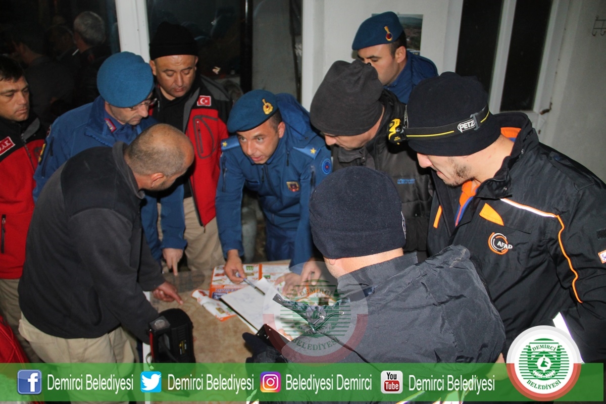 Demirci İlçe Jandarma Komutanı Teğmen Okan Doğan koordinesinde Beğenler mahallesinde Jandarma, AFAD ve Demirci Belediyesi Arama Kurtarma ekipleri ile dağda arama yapılacak noktalar belirlendi.