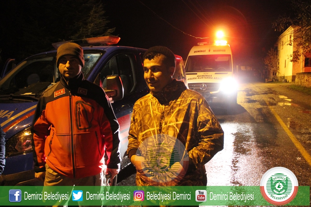 Demirci'de av için dağa çıkan 4 avcıdan birinin kaybolması üzerine Demirci Belediyesi Arama Kurtarma Timi, Jandarma ve Afad ekiplerinin 8 saatlik arama faaliyetleri neticesinde sağ olarak bulundu.