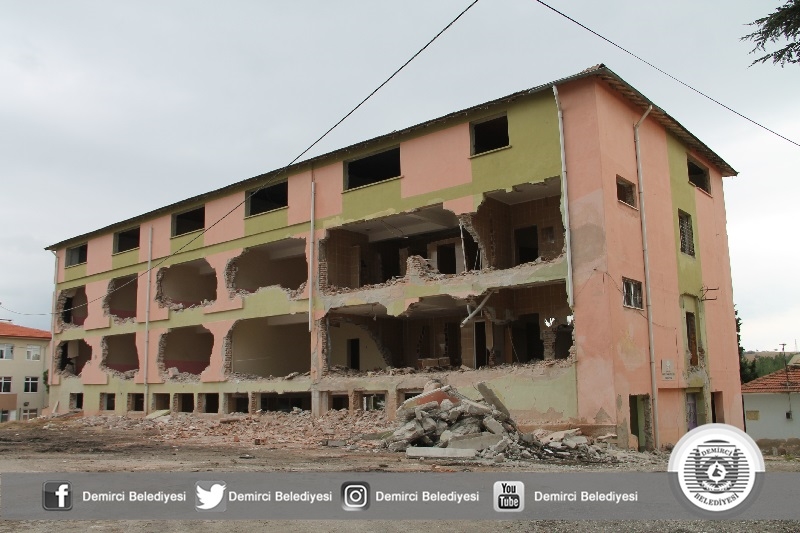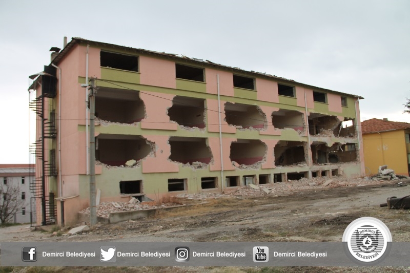 Milli Eğitim Bakanlığınca yatırım programı çerçevesinde Demirci İmam Hatip Lisesinin inşaatında hafriyat çalışmasına start verilirken, eski binalarında yıkımı da beraberinde devam ediyor.