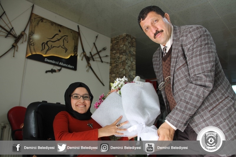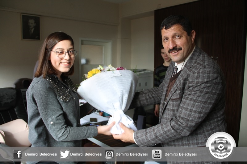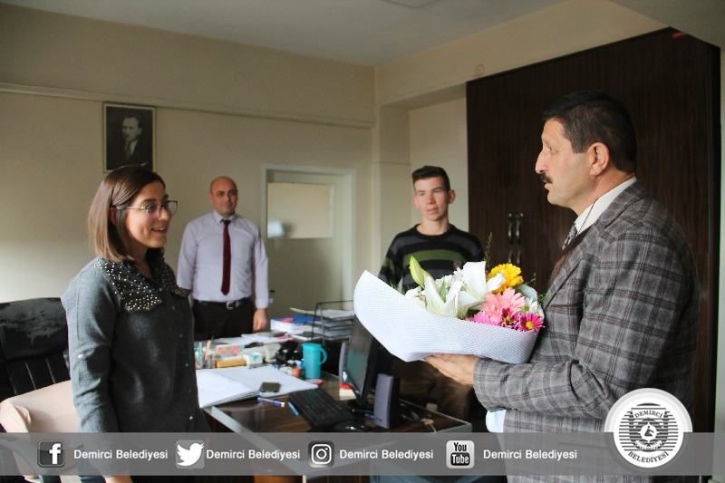 Belediye Başkanı Selami Selçuk, ilk olarak kendi personeli olan Demirci Belediyesi Yazı İşleri Müdürlüğünde çalışan Elif Kavası, Lezzeti Ala Pide Salonunda çalışan Arzu Karataş ve son olarak ta Altınyer Tekstilde muhasebeci olarak çalışan Said Arslan'ı işyerlerinde ziyaret ederek, çiçek takdim etti.