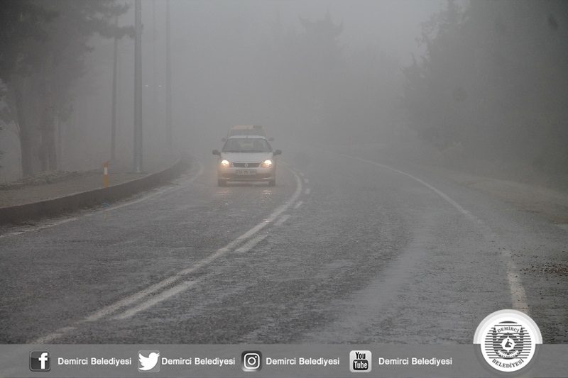 Demirci'de hafta başından bu yana etkili olan sağanak yağmur yerini yükseklerde ara ara hafif kar yağışına bırakırken, ilçe merkezinde de sis etkili oluyor. İlçe merkezinde görüş mesafesi 20 metre, Demirci - Simav karayolu ve Demirci - Salihli yolunda görüş mesafesi 10 metrenin altına düşüyor.