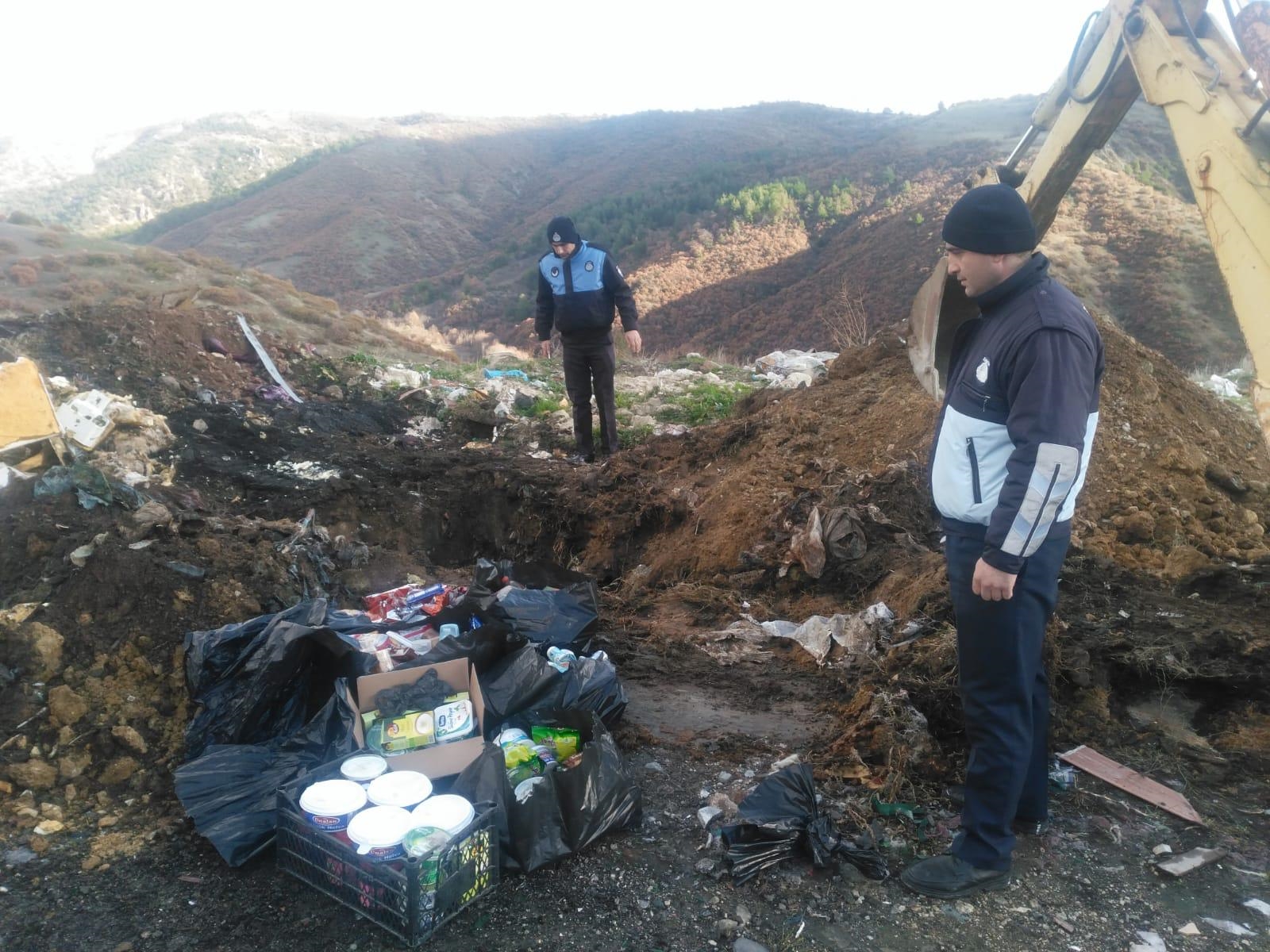 Son kullanma tarihi geçmiş ürünler şehir dışında bulunan hafriyat alanında kontrollü bir şekilde gömülerek imha ediliyor.