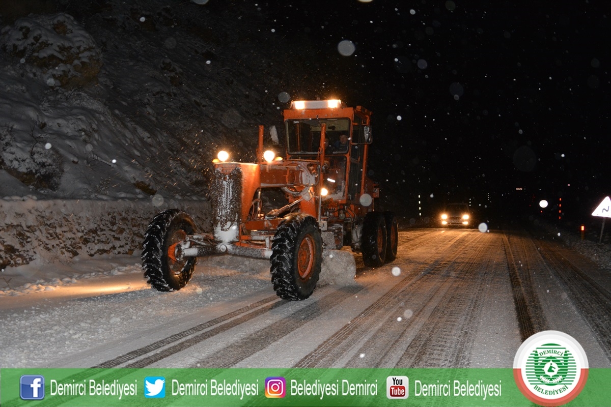 Diğer yandan Demirci - Simav karayolu BİN 470 rakımlı Akçakertik mevkiinde de Demirci Karayolları ekipleri aralıksız karla mücadele ve tuzlama çalışmalarına devam ediyor.