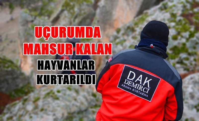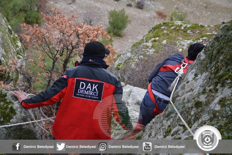 Sürüden ayrılan ve uçurumda mahsur kalan 12 keçi Demirci Belediyesi Arama Kurtarma ekiplerince 3 saat süren çalışma sonucunda kurtarıldı.