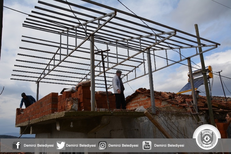 Fen İşleri ekiplerince 70 metrekare genişliğinde binanın üst katına profil bağlantıları yapılarak çelik çatı montajına başlandı. Öte yandan Duvar örme çalışmalarının başladığı binada, önümüzdeki günlerde pencere ve kapı montajı yapılacak.