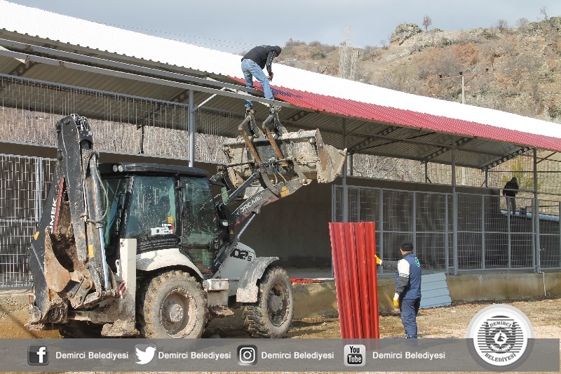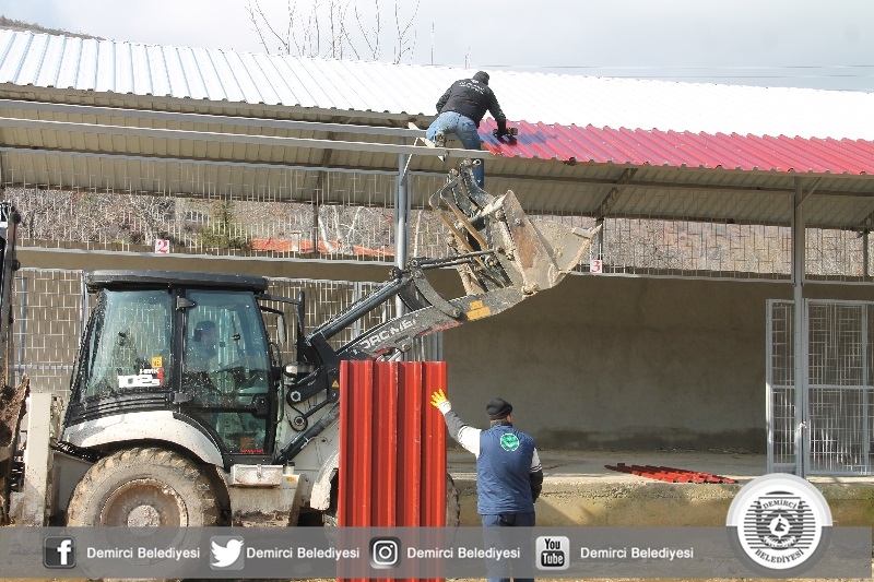 Fen İşleri ekipleri çatı sundurmasını uzatarak, ön cepheyi kilitlenebilecek kapılarla bölmeler yaptı. Yeni yapılan alanlar boyanarak üreticinin kullanımına sunuldu.