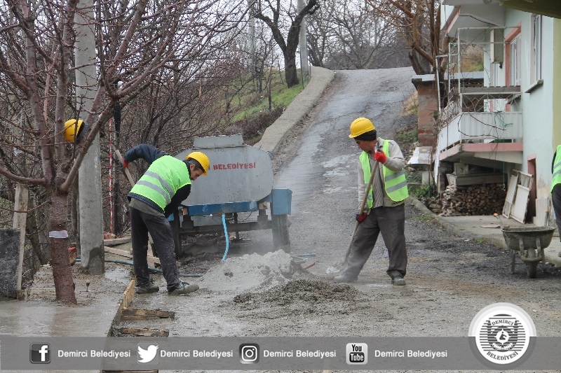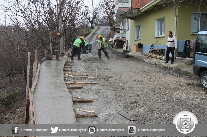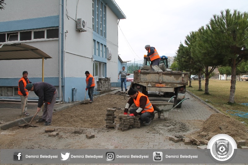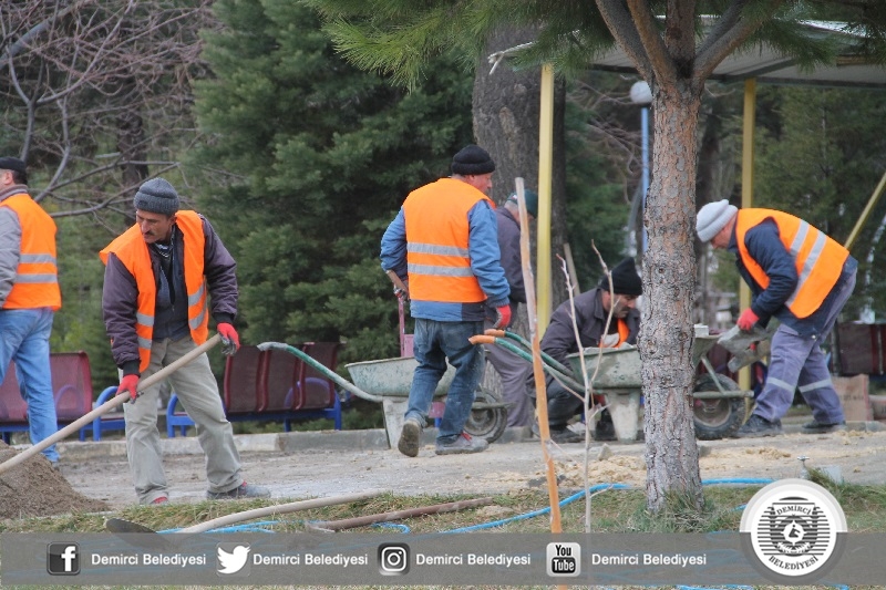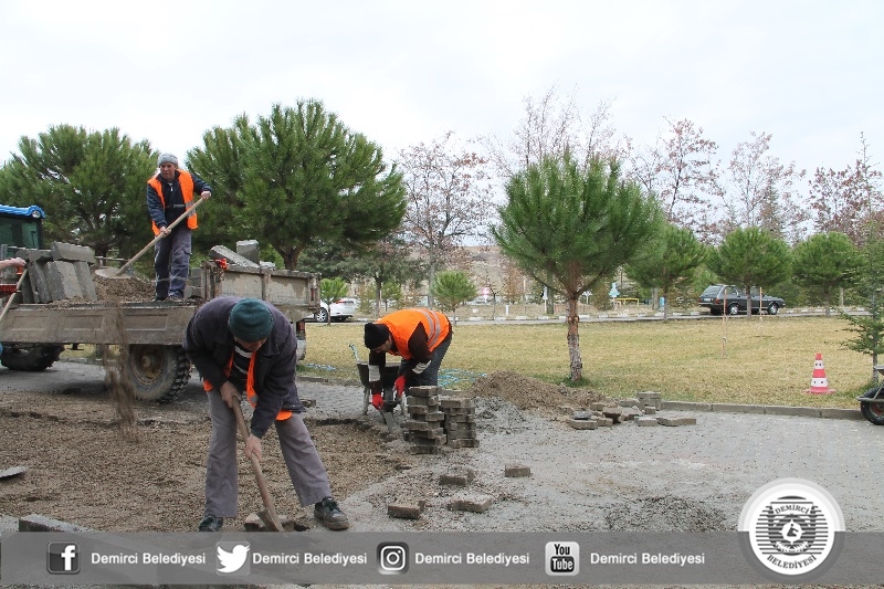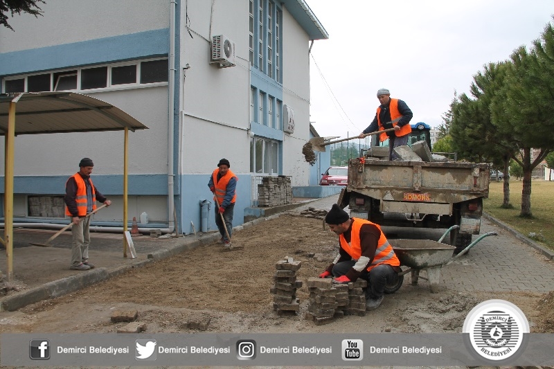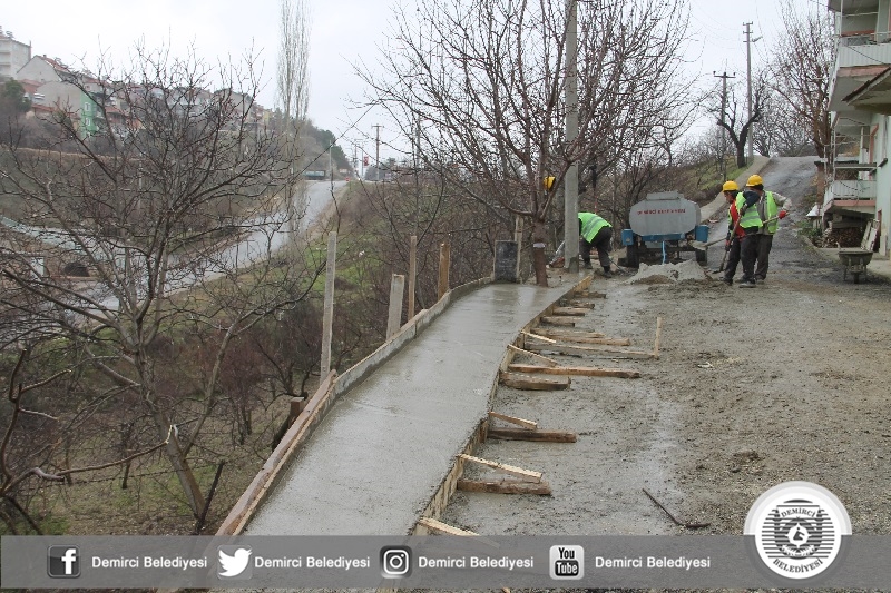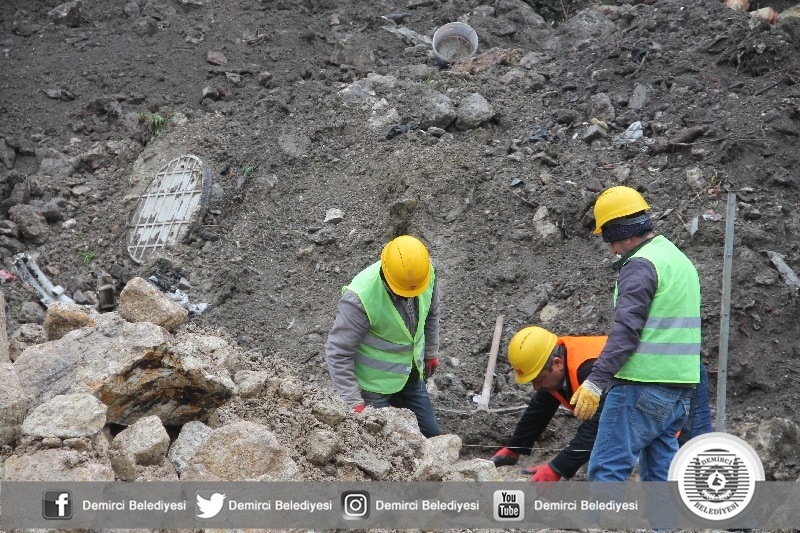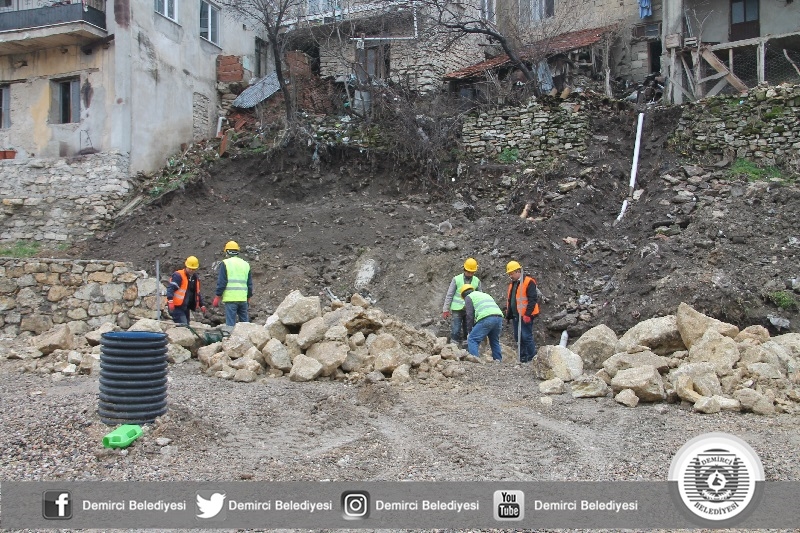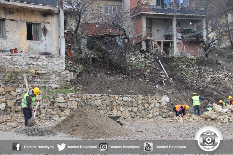Diğer yandan Yağmur mahallesi Düvenönü cami arkasında Demirci Belediyesince düzenlemeler devam ediyor. Alanın daha kullanışlı olması amacıyla taş örme duvar çalışması hızla sürüyor.