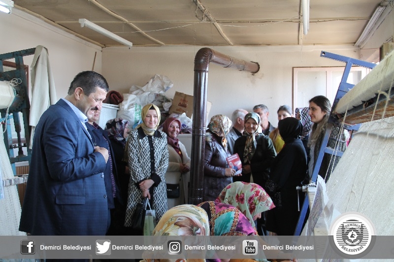 04 Mart 2019 Pazartesi günü Belediye Başkanı Selami Selçuk, Belediye meclis üyesi Akif Altunbaşak, belediye meclis üyesi adayı Münevver Danışan, Emine Akşahin, AK Parti ve MHP İlçe Kadın kolları ekibi ile birlikte İlçe merkezinde halı atölyelerine giderek halı dokuyan bayanları ziyaret ettiler.