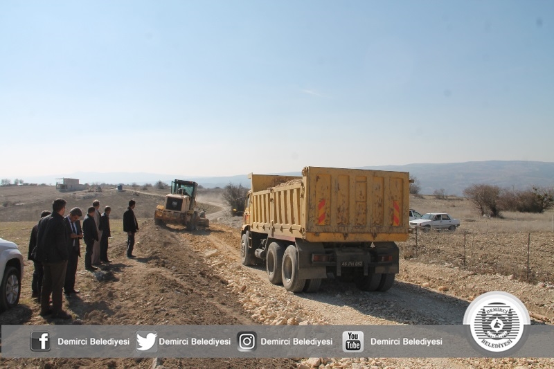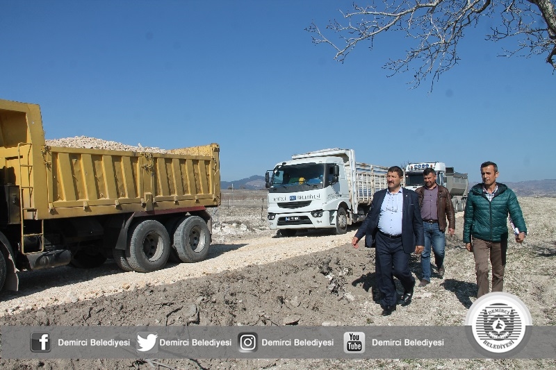 Demirci Belediyesine ait 7 kamyon ile 5 kilometrelik yola 200 kamyon stabilize malzeme dökümü yapıldı. Greyder ile yola serililen malzeme Manisa Büyükşehir Belediyesine ait silindir ile sıkıştırma yapılarak yol hazır hale getirildi.