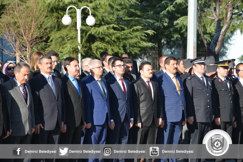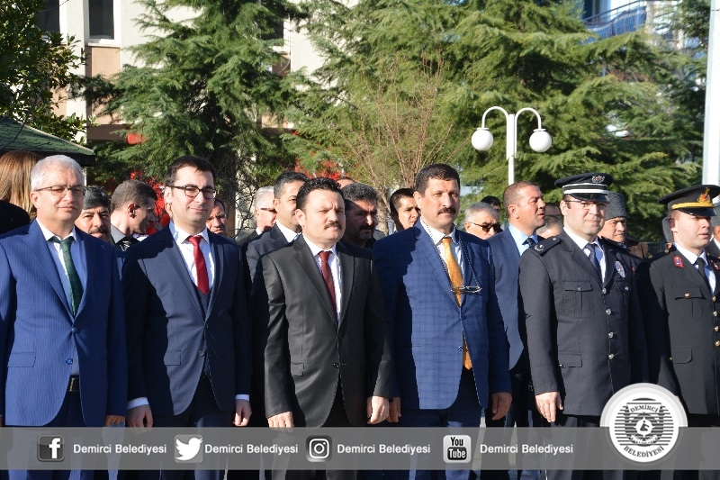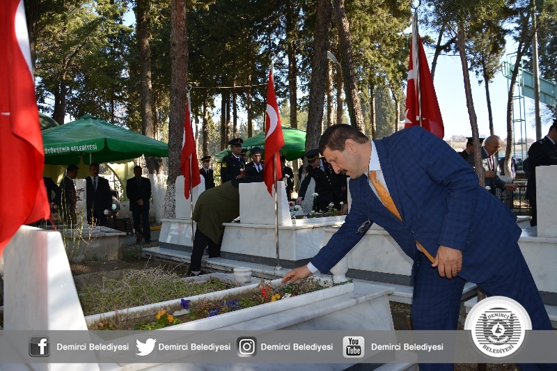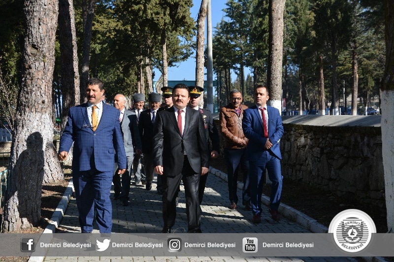 18 Mart Şehitler Günü törenleri kapsamında ilk tören belediye hizmet binası önünde yapıldı. Törene Demirci Kaymakamı Mutlu Akyol, Belediye Başkanı Selami Selçuk, Cumhuriyet Başsavcısı Barış Ünsal, Gaziler, Şehit Aileleri ve protokol üyeleri katıldı.