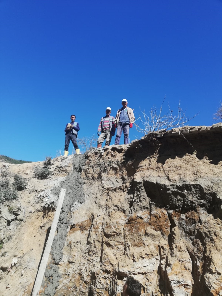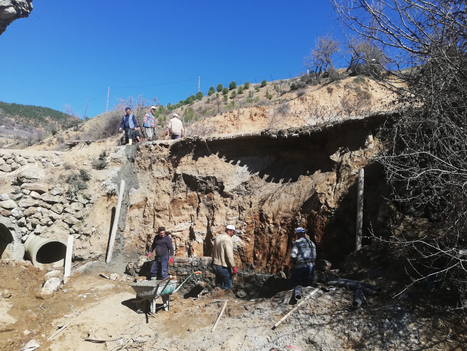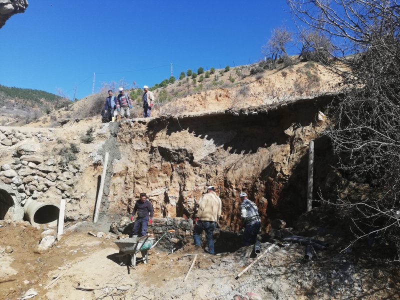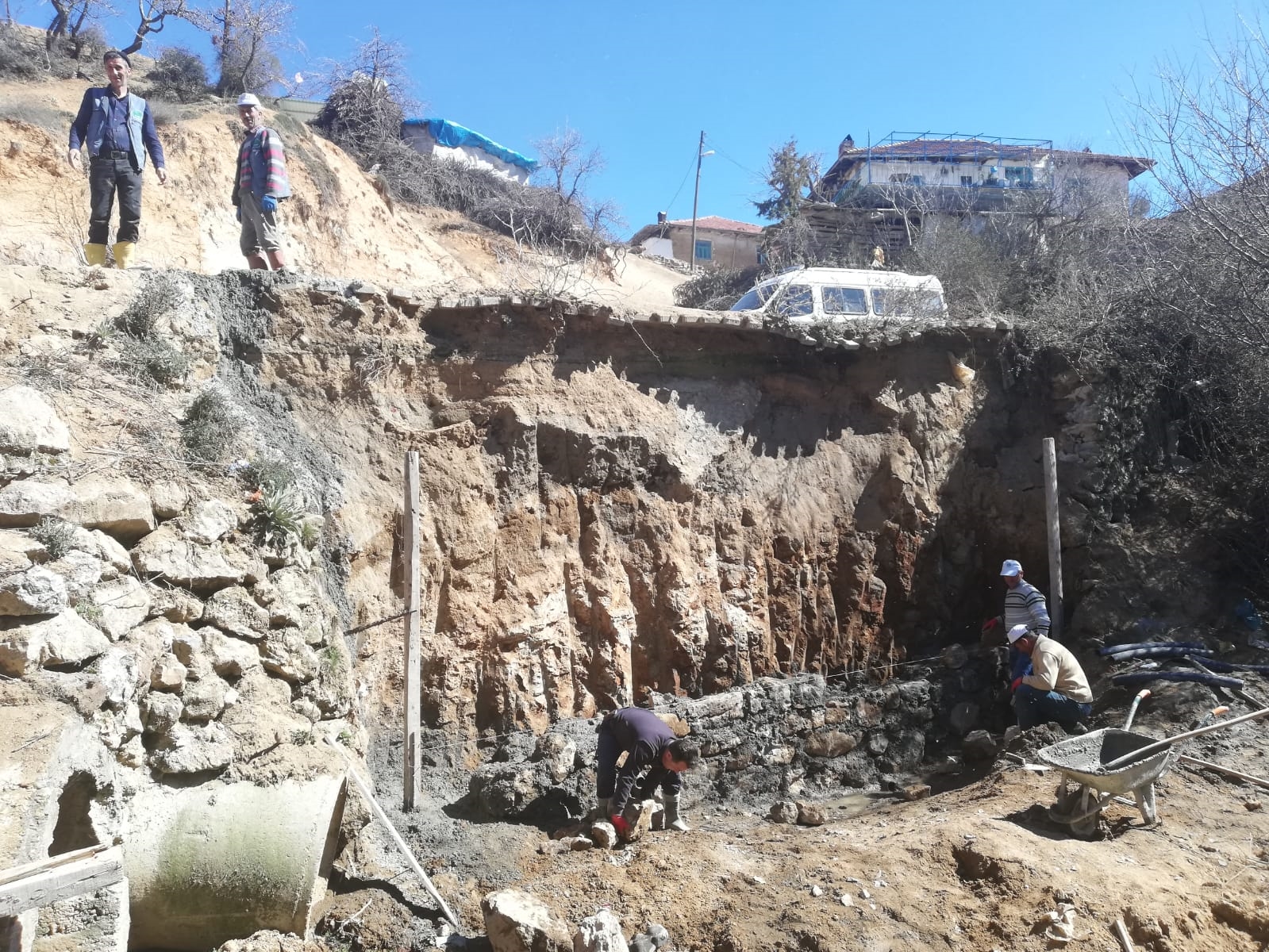 Mahalle Muhtarılığınca Demirci Belediyesine yapılan talep üzerine Fen İşleri ekiplerince yol kenarına 40 metre uzunluğunda 5 metre yüksekliğinde taş örme istinat duvarı örmeye başladı.