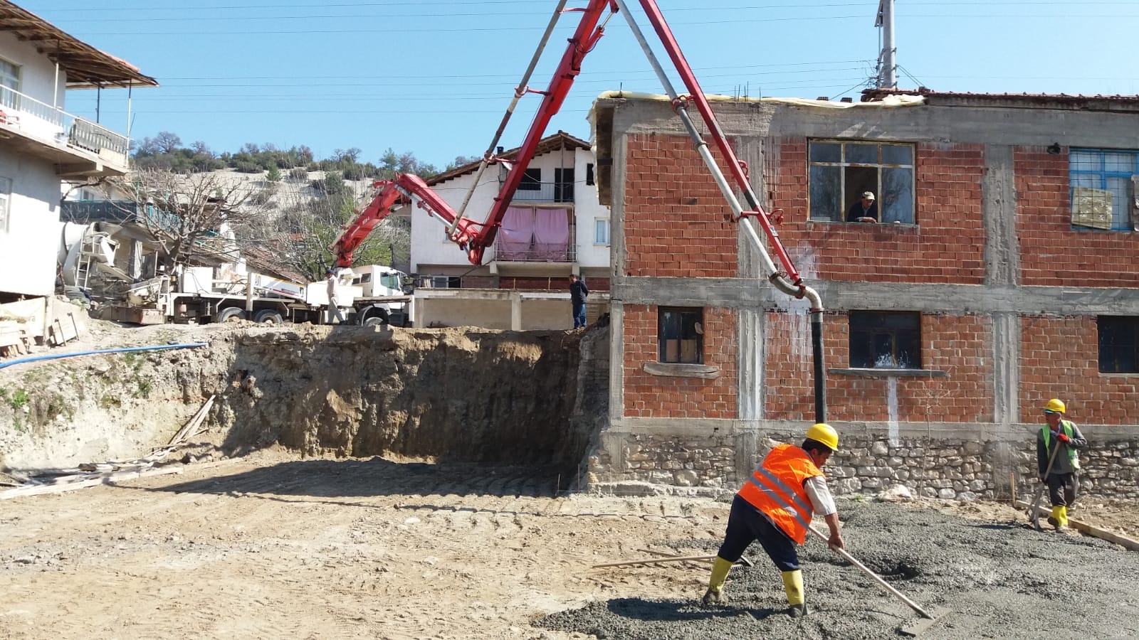 Fen İşleri ekiplerince Mahalle Muhtarlığının gösteri alanda yapılan alan düzenlemesinin ardından, Gümele Çok Amaçlı Salonun temeli atıldı.