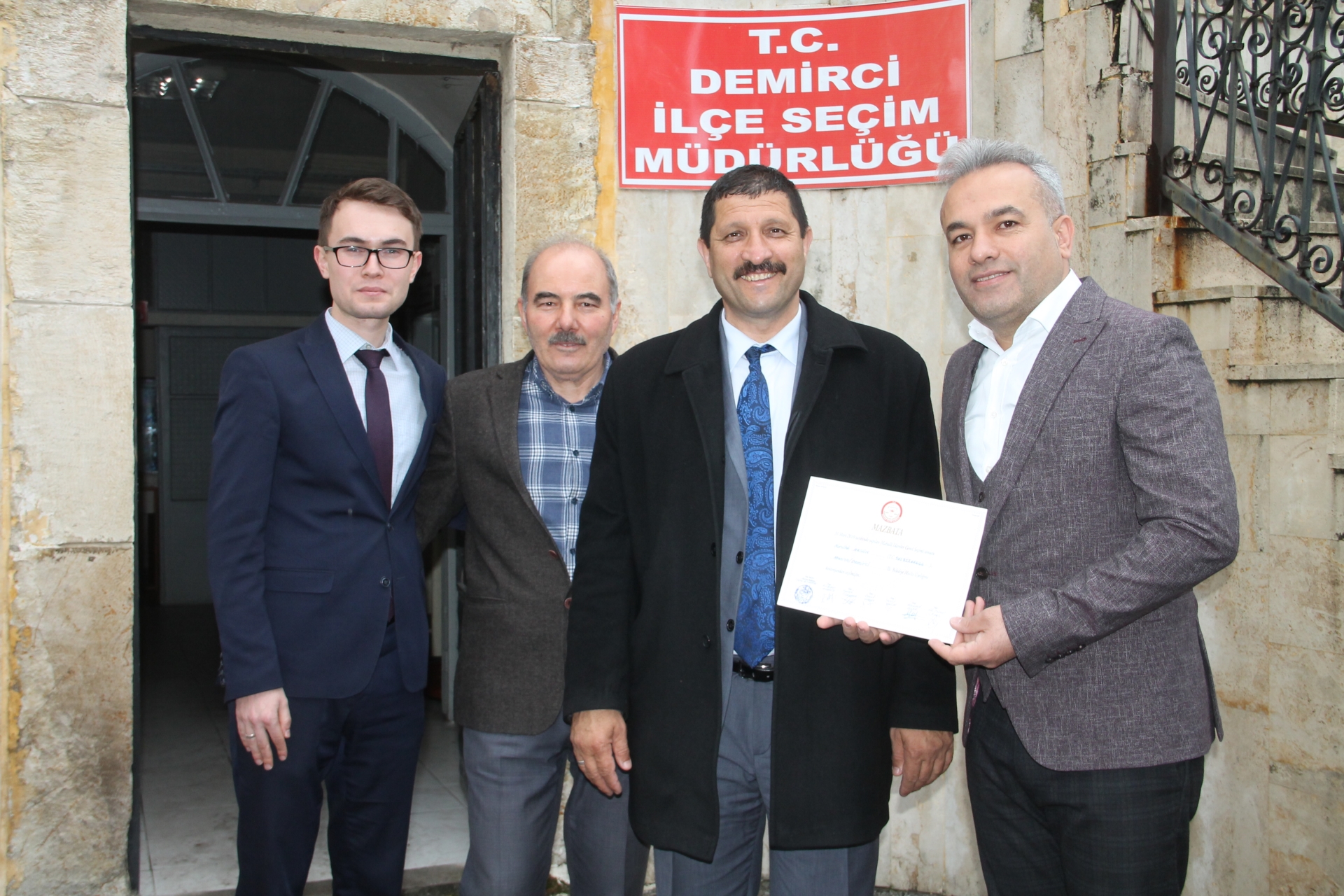 31 Mart Mahalli İdareler seçimlerinde Demirci'den Cumhur İttifakı Belediye Meclis üyesi seçilen meclis üyeleri mazbatalarını teslim aldılar.