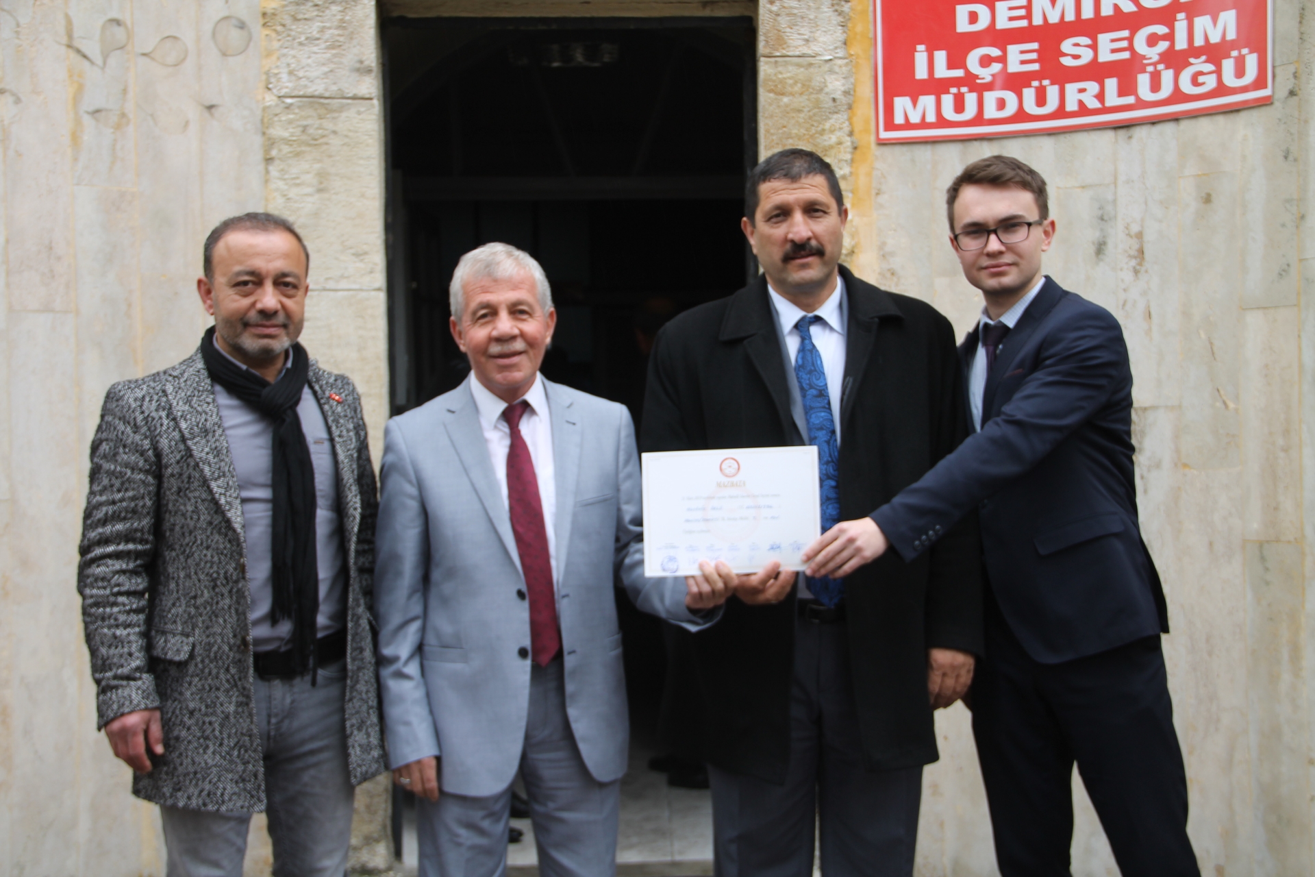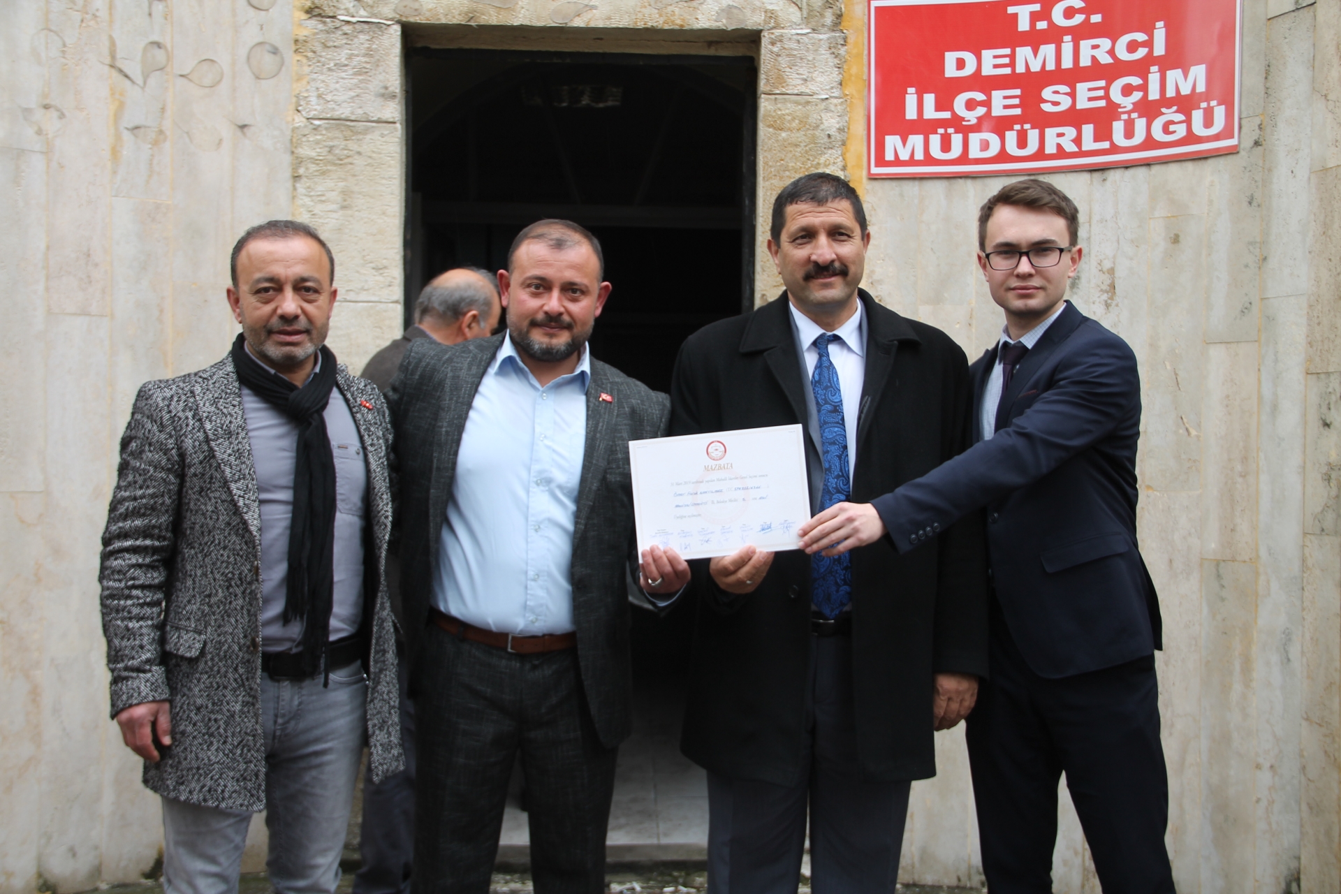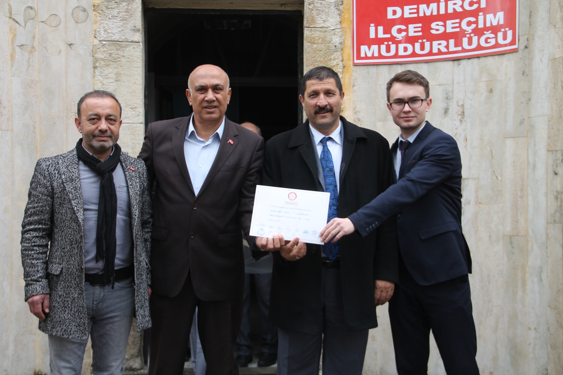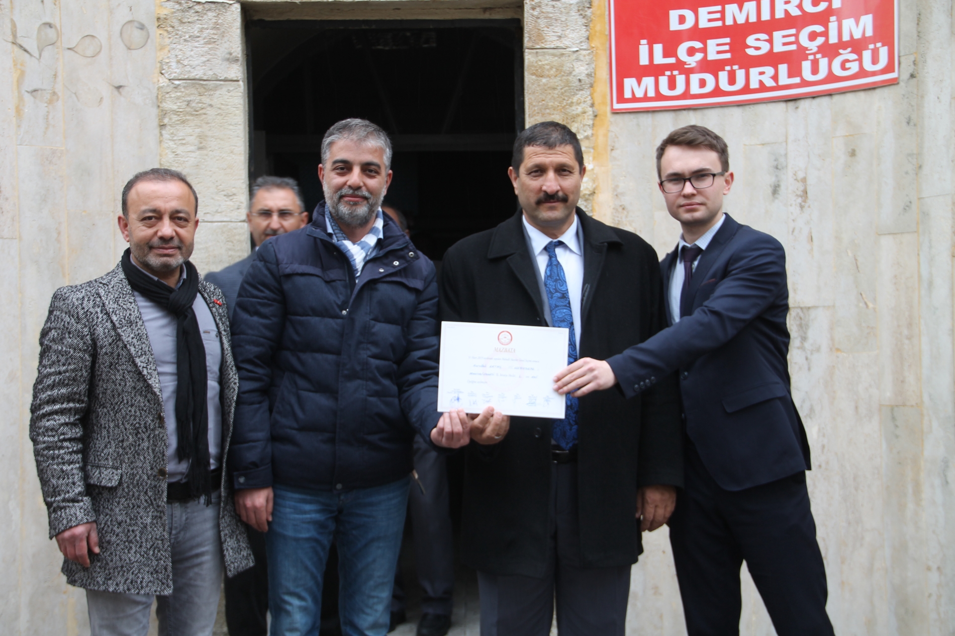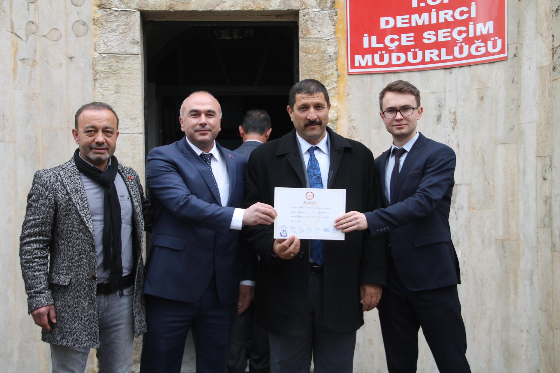 09 Nisan 2019 Salı günü Demirci Hükümet konağı önünde düzenlenen törenle Cumhur İttifakı'dan Demirci Belediye Meclisine seçilen meclis üyeleri mazbatalarını aldı.