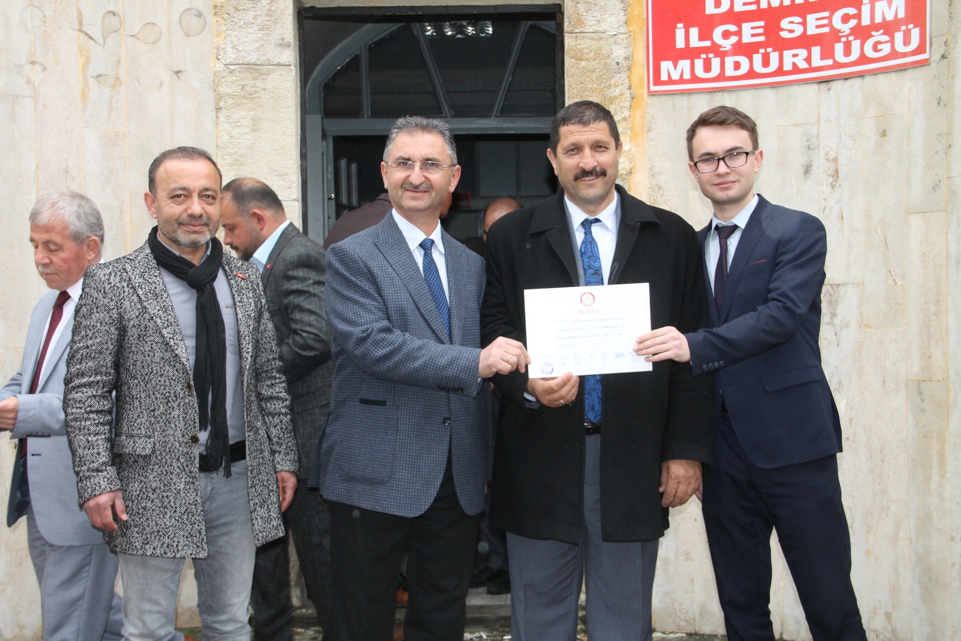 Belediye Başkanı Selami Selçuk ve MHP İlçe Başkanı Ümit Kanyılmaz'ında katıldığı mazbata teslim töreninde İlçe Seçim Kurulu Müdürü Oğuzhan Talip Kaymak tarafından, Cumhur İttifakı Belediye Meclis üyelerine mazbataları verildi.