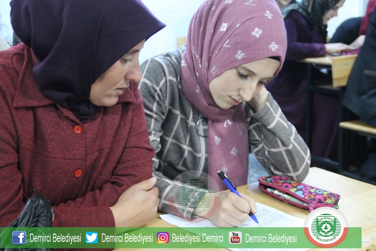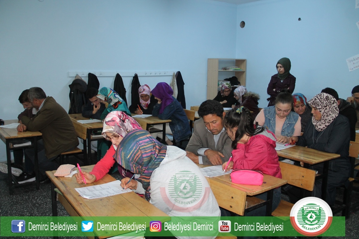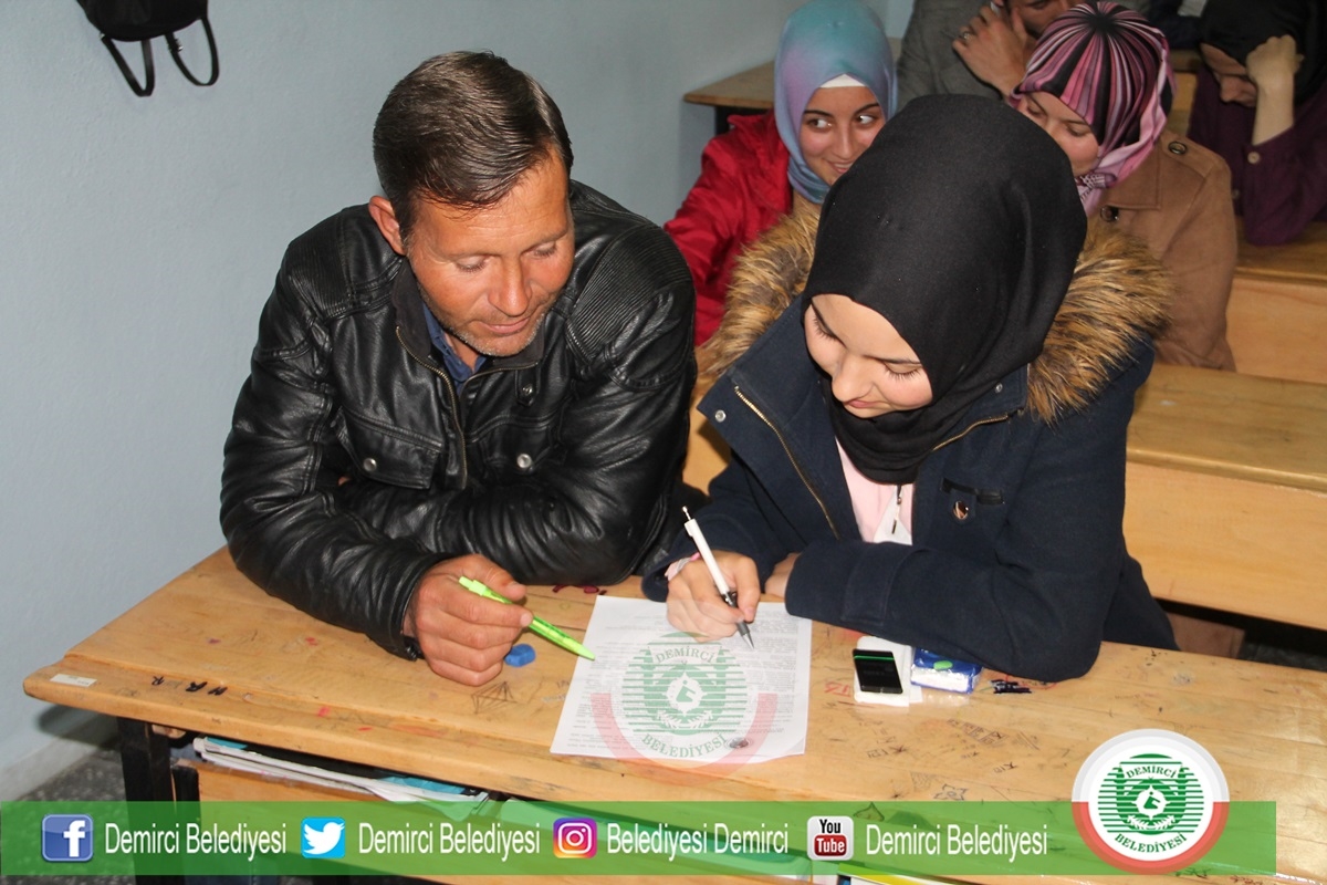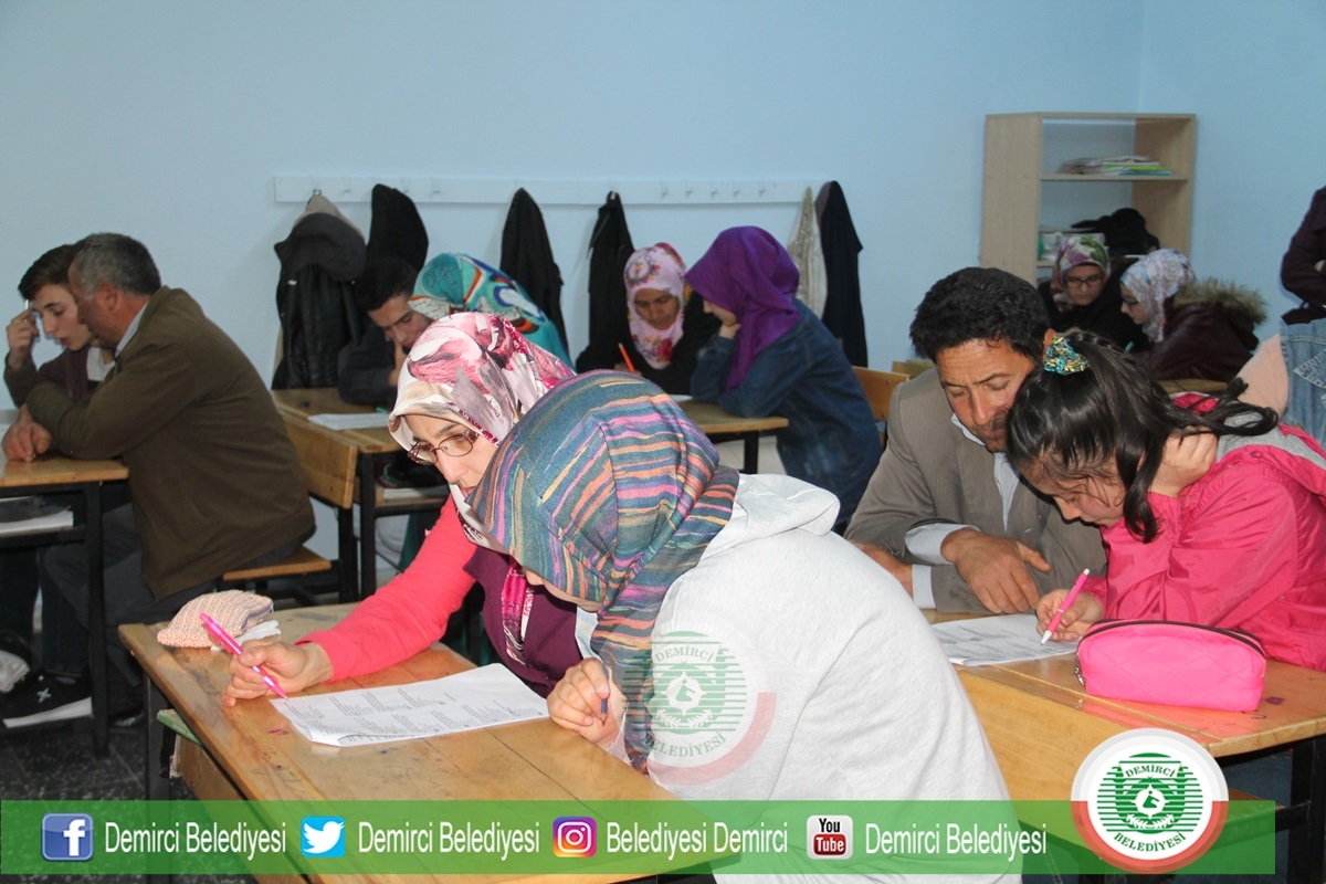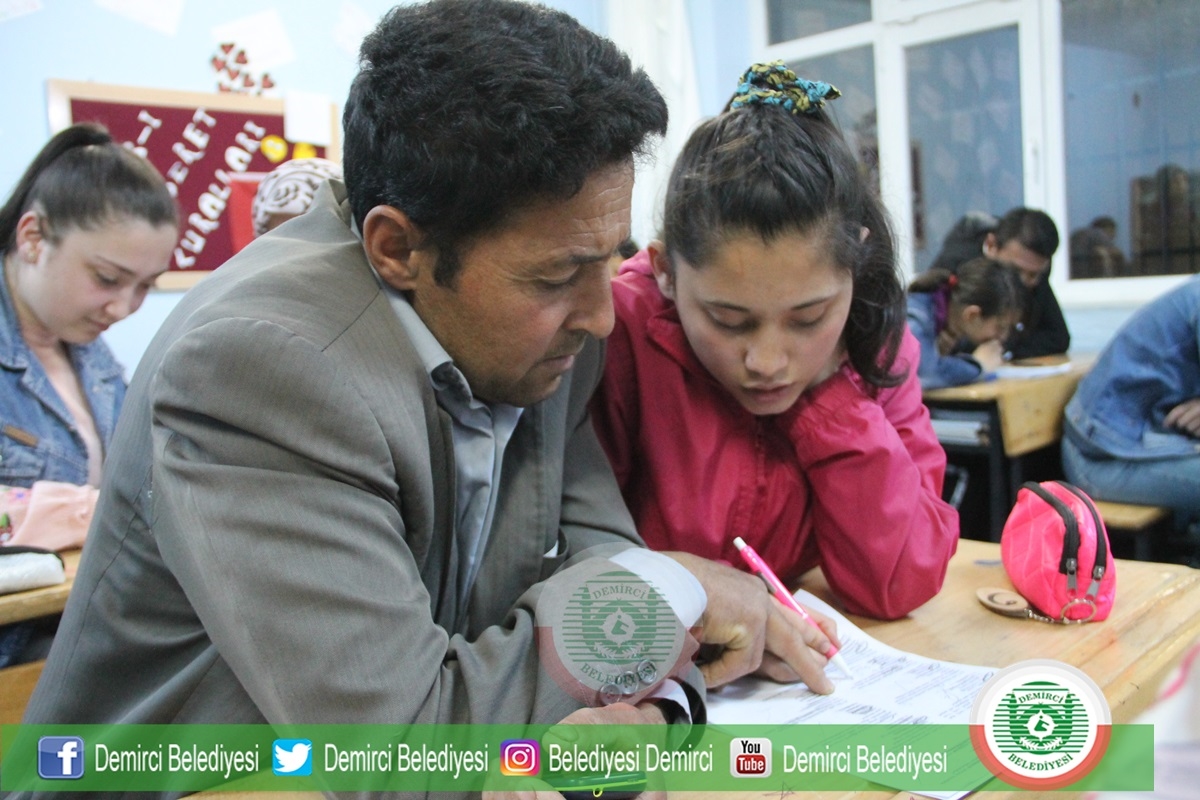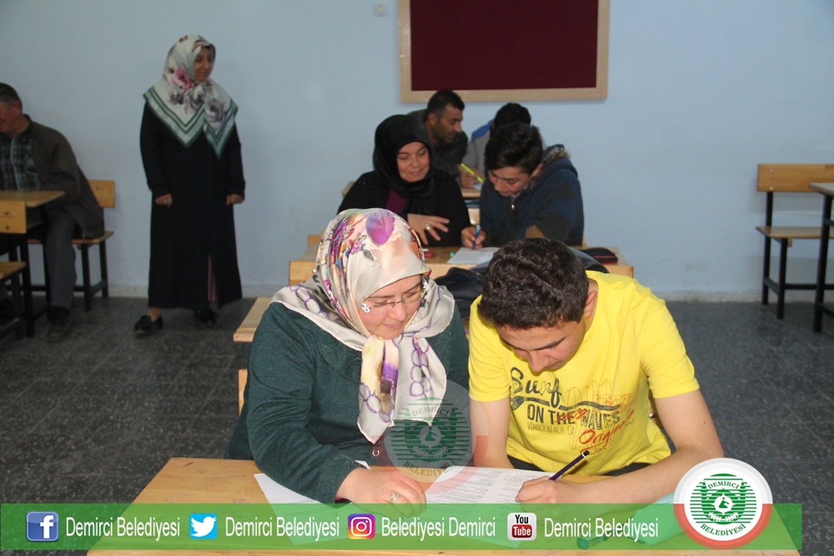 Demirci'de veliler, çocukların okuduğu okulda çocukları ile birlikte sınavda ter döktüler.