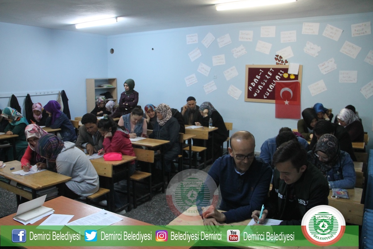Amaçlarının gençlere kitap okuma alışkanlığını kazandırmak olduğunu ifade eden Okul Müdürü Özcan Darıcı yaptığı açıklamada " Demirci Anadolu İmam Hatip Lisesi Fen ve Sosyal Bilimler Proje okulu olarak Ailemle yarışıyorum adlı bir sınav yarışması tertip ettik. Biz Osmanlıyız kitabını öğrencilerimize ve velilerimize dağıttık. Evde kitabı okuyan öğrenci ve velisini çocuklarının öğrenim gördüğü aynı sınıf ve sıralarda sınav yaptık. 75 ailemiz sınava katıldı. Okudukları kitaptan kendilerine yöneltilen 20 soruyu cevaplandırdılar. Amacımız çocuklarımızın sınav stresini yenmelerini, ailelerin çocuklarının her durum şartta yanlarında olduğunu göstermektir. Yarışma sınavında ilk 5'e girmeye hak kazanan ailelerimize hediyelerimiz olacak" dedi.