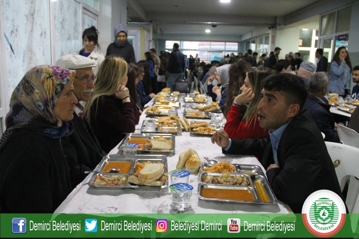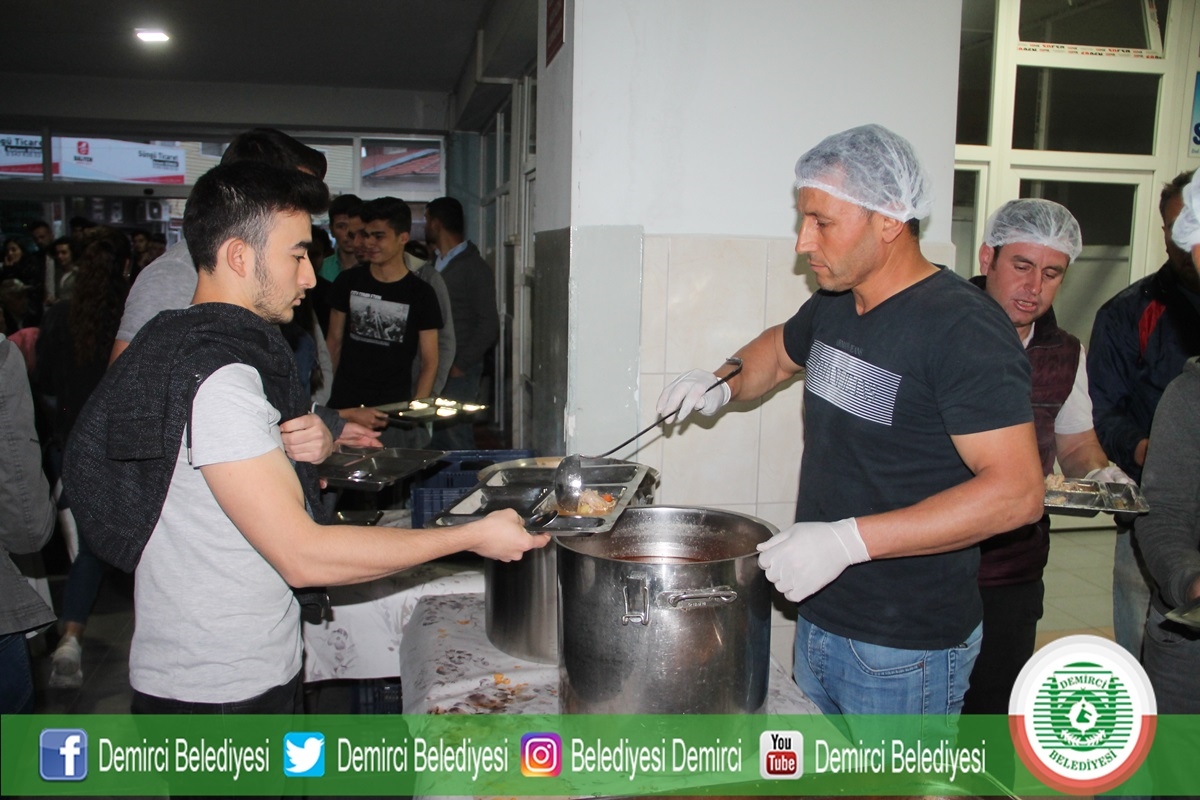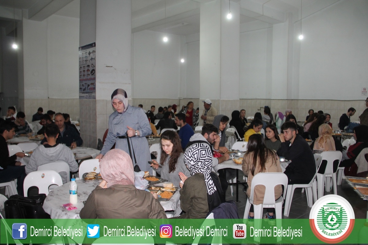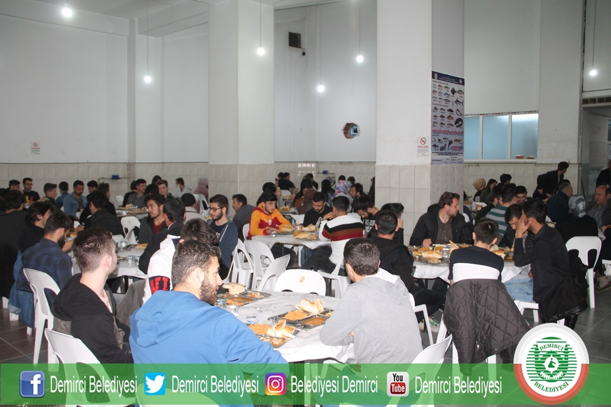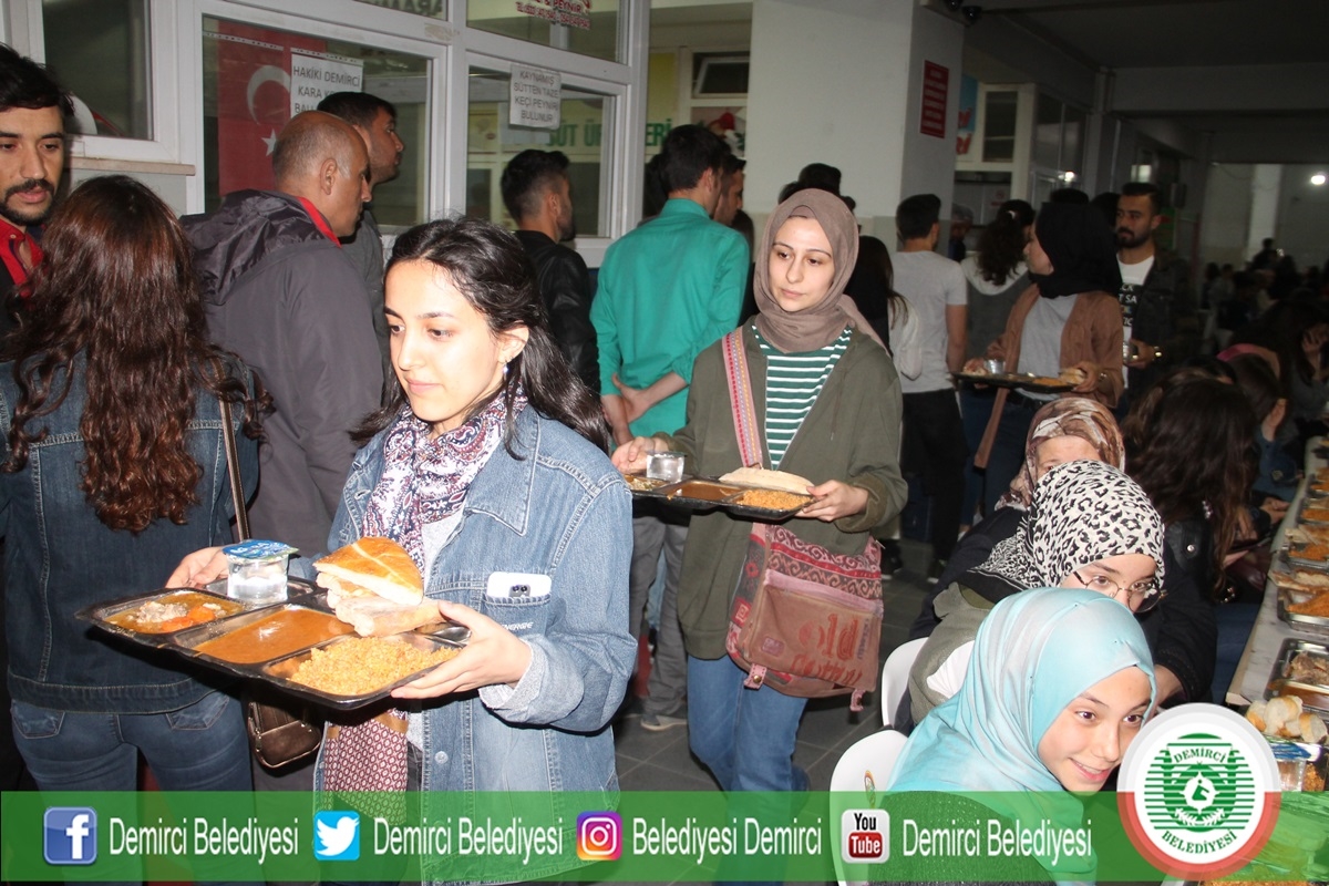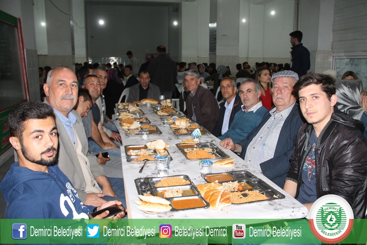 Demirci'de Ramazan ayının ilk gününde Ticaret ve Kültür Merkezinde belediye ve hayırseverler tarafından yaklaşık bin kişiye iftar yemeği verildi.