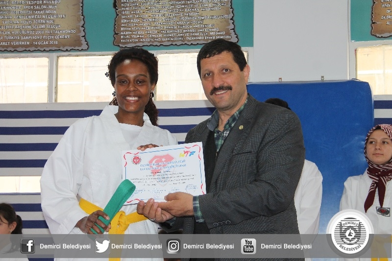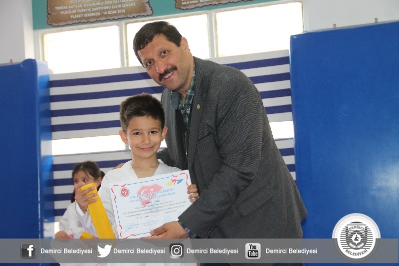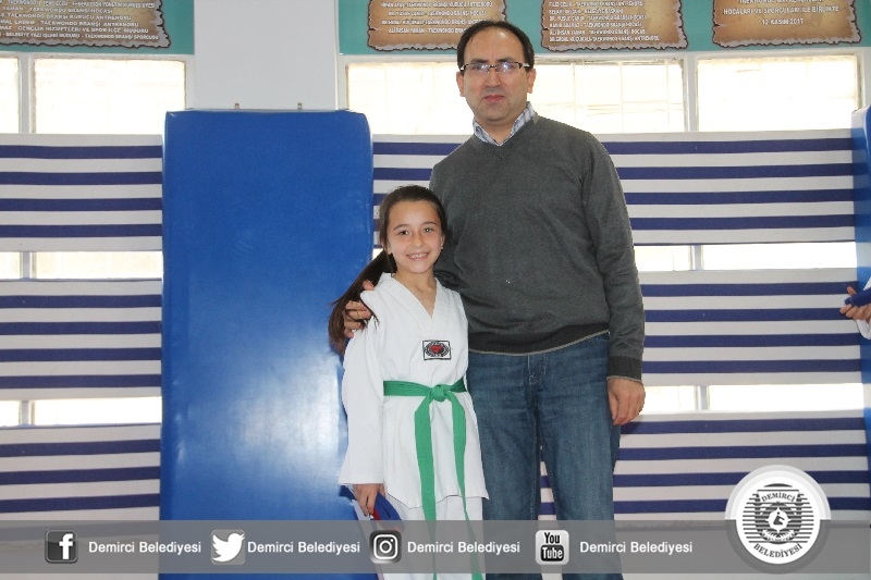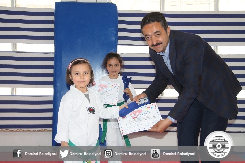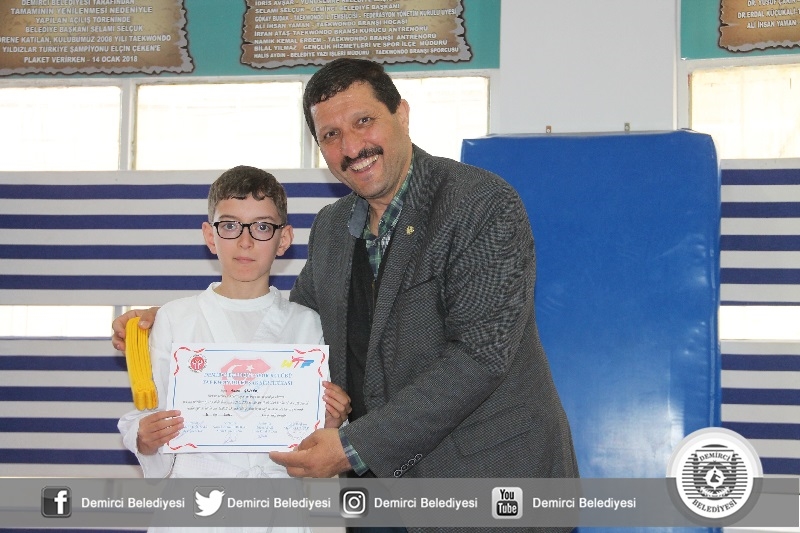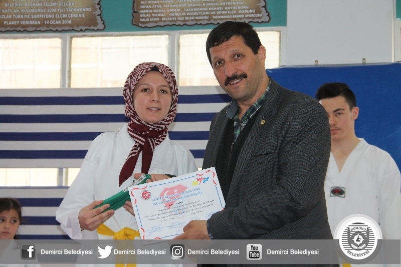 Kuşak terfisi alan sporculara belge ve kuşakları Belediye Başkanı Selami Selçuk, Gençlik Hizmetleri ve Spor İlçe Müdürü Bilal Yılmaz ve Taekwondo spor kulübü siyah kuşak 3'dan Erdal Küçükali tarafından verildi.