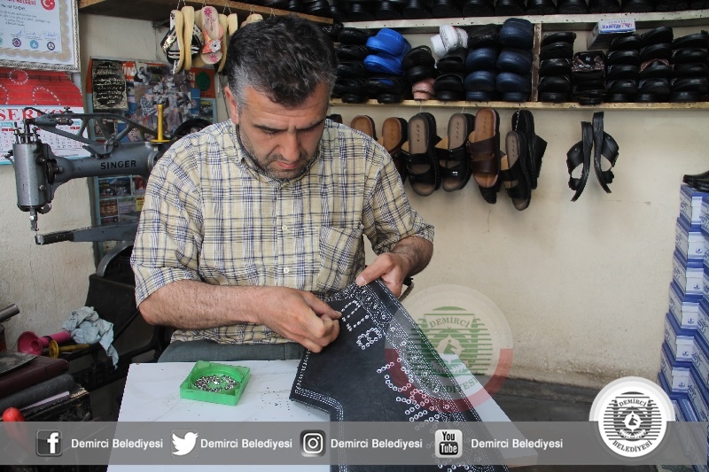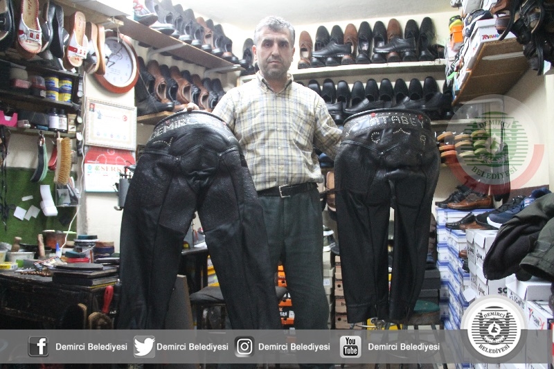 Demirci Birlik caddesinde bulunan işyerinde 35 yıldır kardeşi Mehmet Kozak ile çalışan Murat Kozak, meslek hayatı boyunca yağlı güreş şampiyonlarına kıspetler dikiyor.