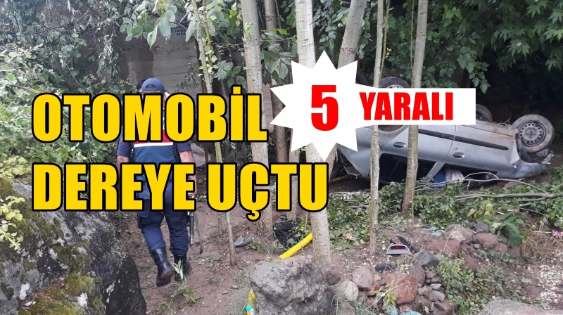 OTOMOBİL DEREYE UÇTU, 5 YARALI