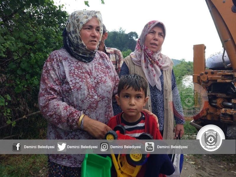 Diğer yandan ilçeye bağlı Kazancı mahallesi Zaim Bükü mevkiinde tütün tarlasından dönen 6 kişilik bir aile çocukları ile birlikte dereye geçemeyerek mahsur kaldı. Yapılan ihbarın üzerine Demirci Belediyesi Arama Kurtarma, Manisa Büyükşehir Belediyesi İtfaiye ekipleri olay yerine ulaştı. Demirci Belediyesine ait iş makinesi dereden geçerek aileyi kurtardı.