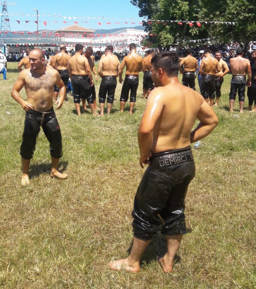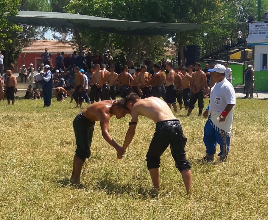 Demircili güreşçilerden Fatih Kurttuan küçük-orta boy, Mehmet Kıran küçük-orta boy ve Mehmet Yılmazer'de Tozkoparan boyunda mücadele edilyor.