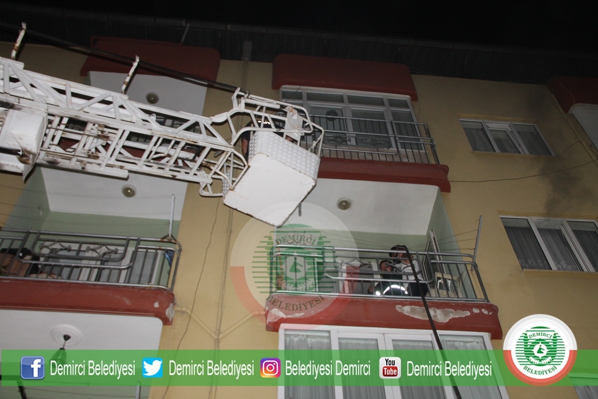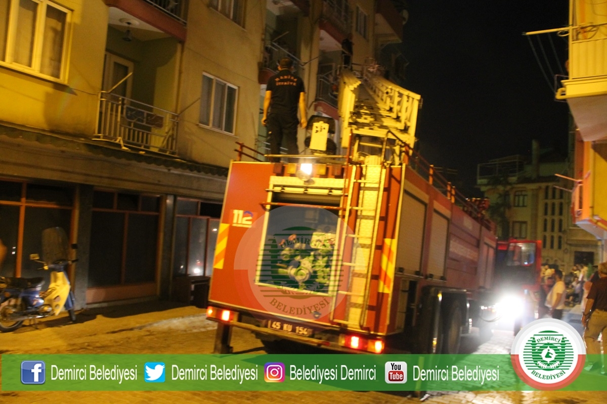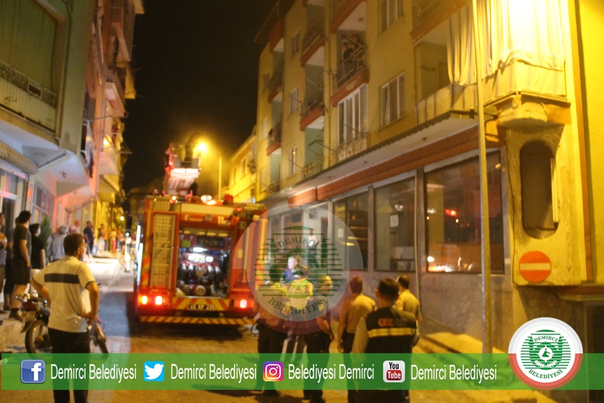 Demirci Gediz A.Ş. Ekipleri de sokak üzerinde elektrik akımını keserek, itfaiye ekibinin güvenli bir şekilde çalışmasını sağladı.