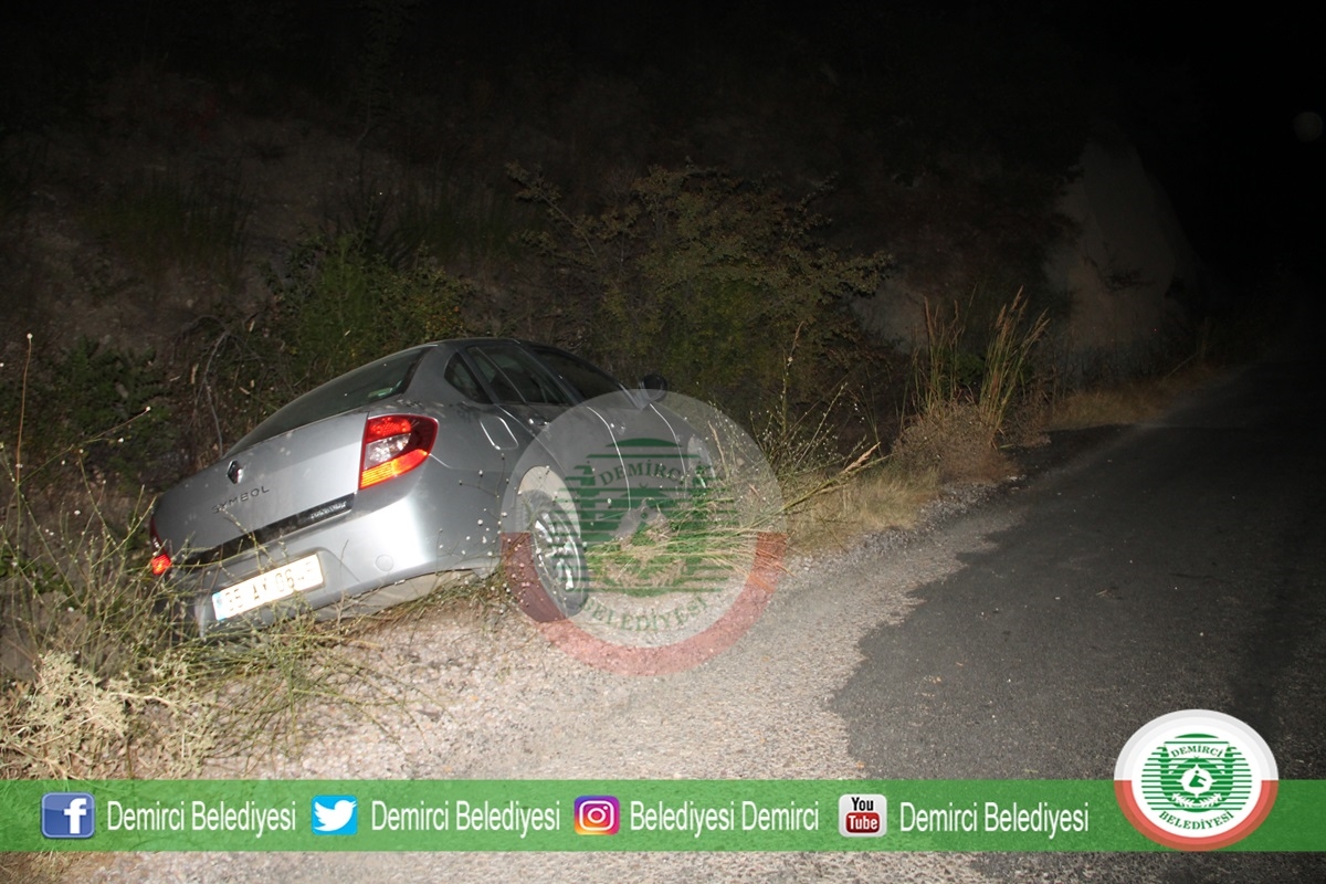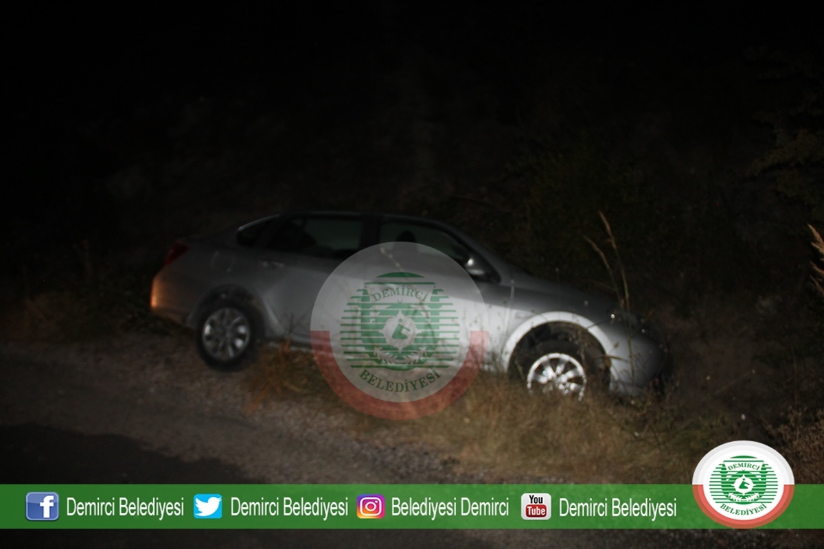 Alınan bilgiye göre Demirci Ayvaalan mahallesinden Demirci'ye gelen 35 AY .... plakalı Erkan K. yönetimindeki otomobil Yiğitler mahallesini geçtikten sonra direksiyon hakimiyetini kaybetmesi sonucu şarampole devrilmesi sonucu kaza yaptı.