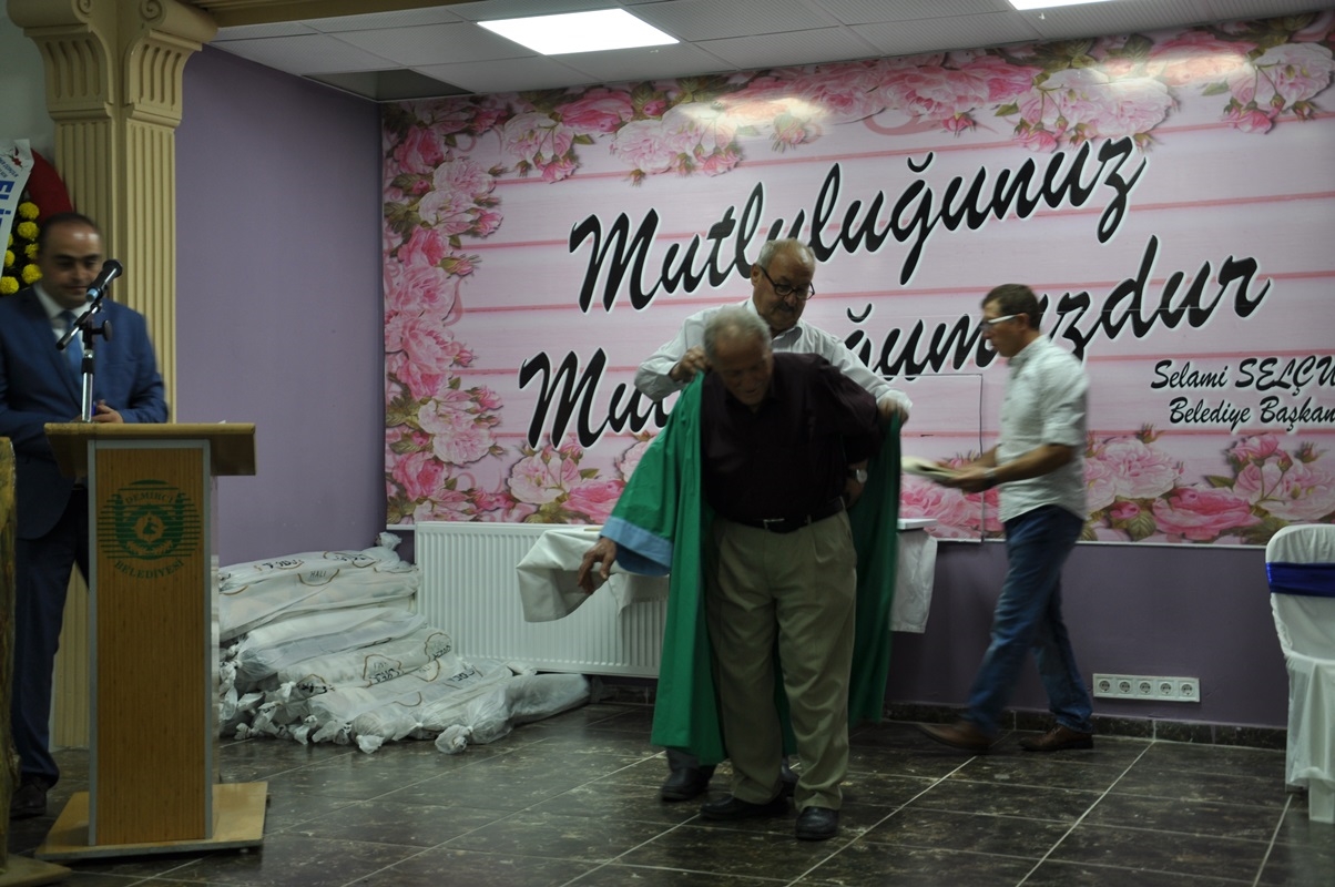 Ahi İhsan Akgün'e kaftan ve kalpağı 2018 yılı Ahisi Ali İhsan Erkul tarafından giydirilerek teslim edildi.