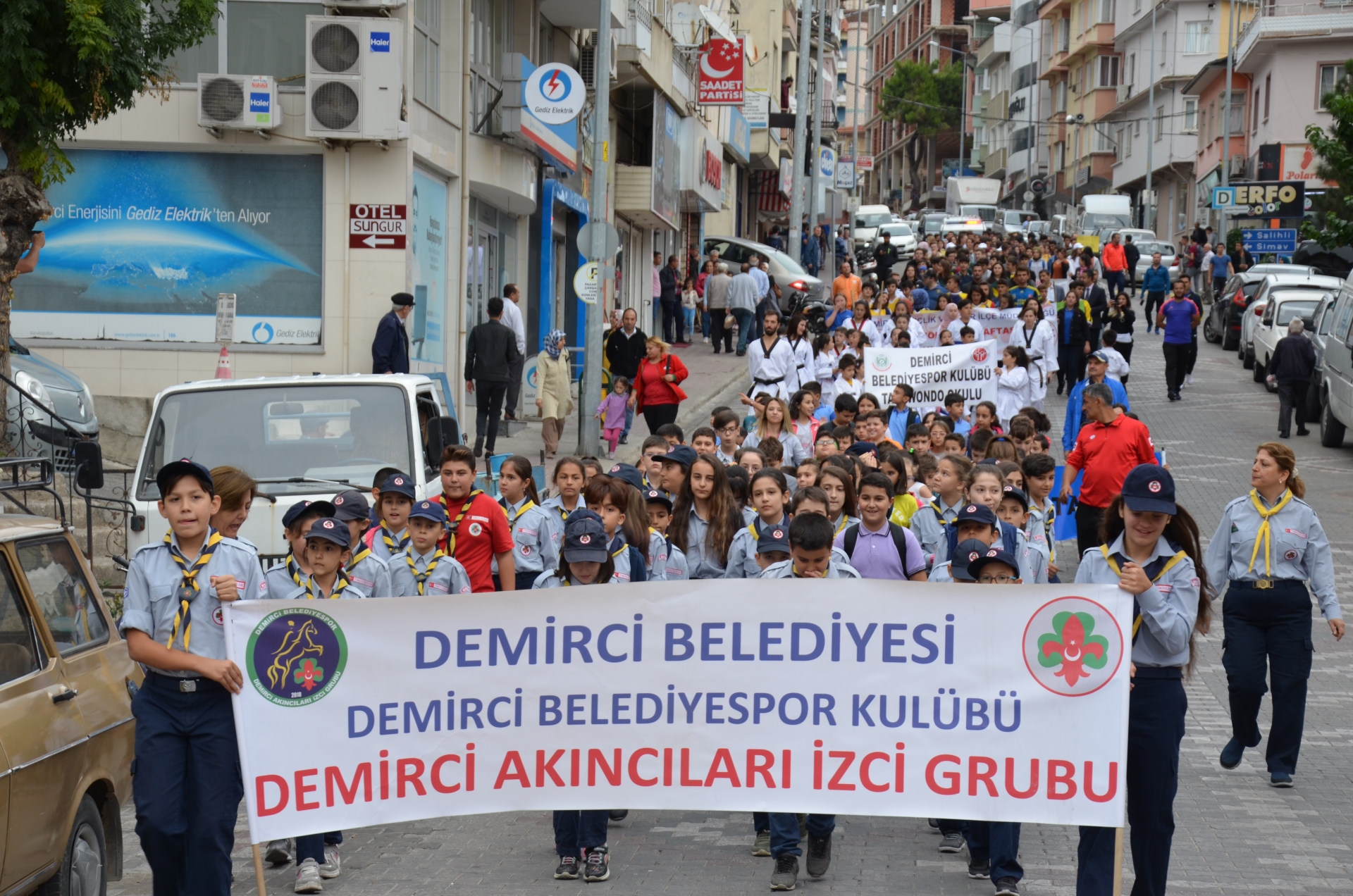Amatör spor haftası dolayı ile Demirci Gençlik Hizmetleri ve Spor İlçe Müdürlüğünce düzenlenen farkındalık yürüyüşüne Kaymakam Adem Kaya, Belediye Başkanı Selami Selçuk, Gençlik Hizmetleri ve Spor İlçe Müdürü Bilal Yılmaz, Demirci Belediyespor Taekwondo sporcuları, Demirci İzcilik kulübü ve öğrenciler katıldı.